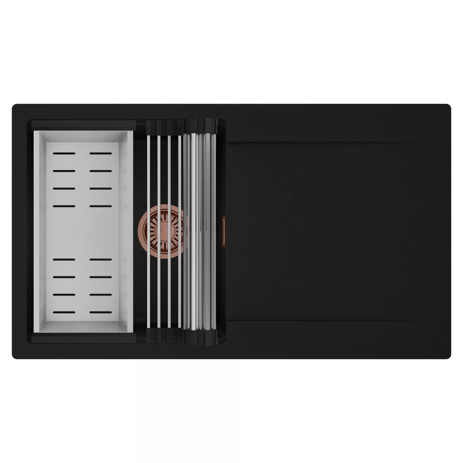 HD Onyx 86 egymedencés mosogatótálca szett, csepegtetőráccsal és kosárral, matt fekete