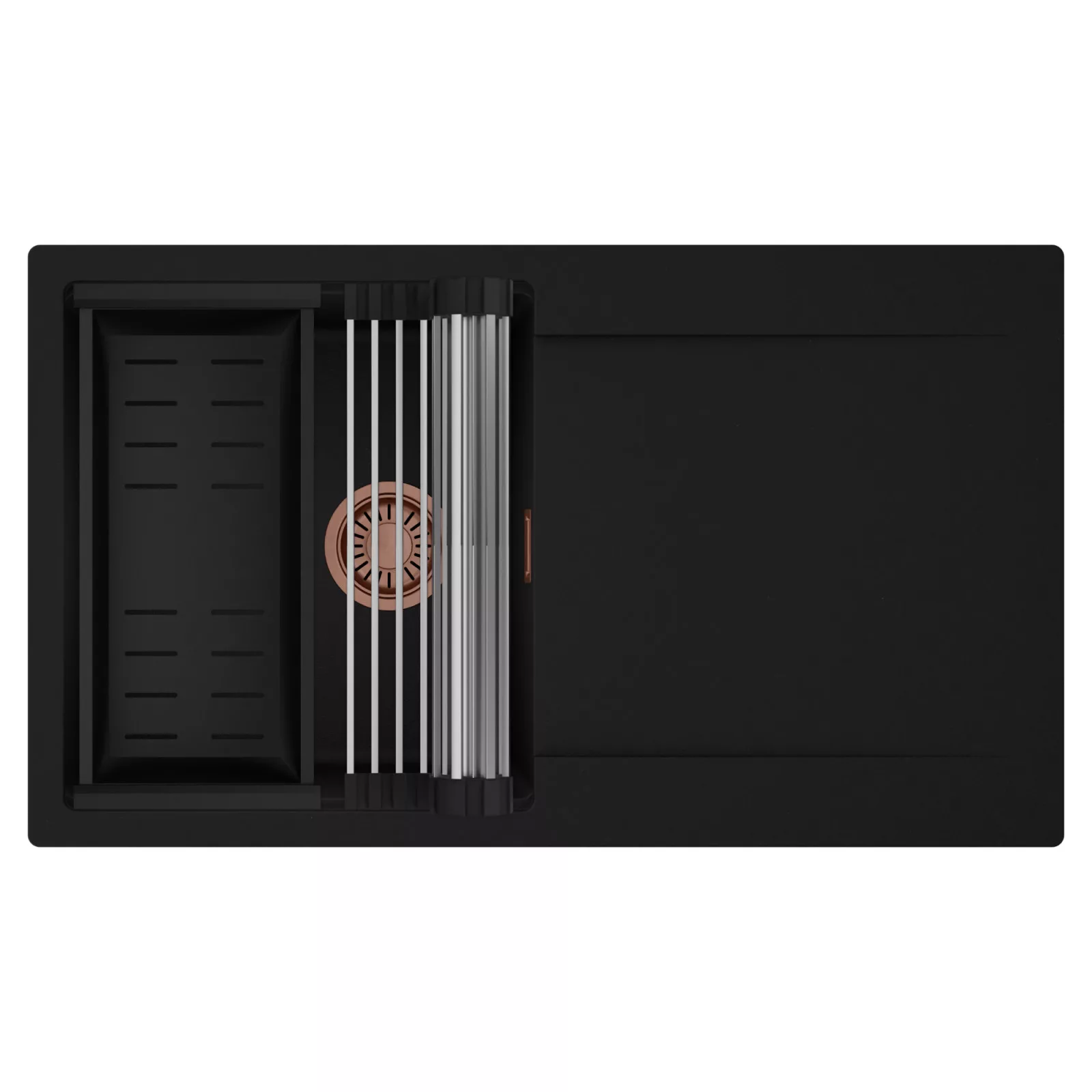 HD Onyx 86 egymedencés mosogatótálca szett, csepegtetőráccsal és kosárral, matt fekete