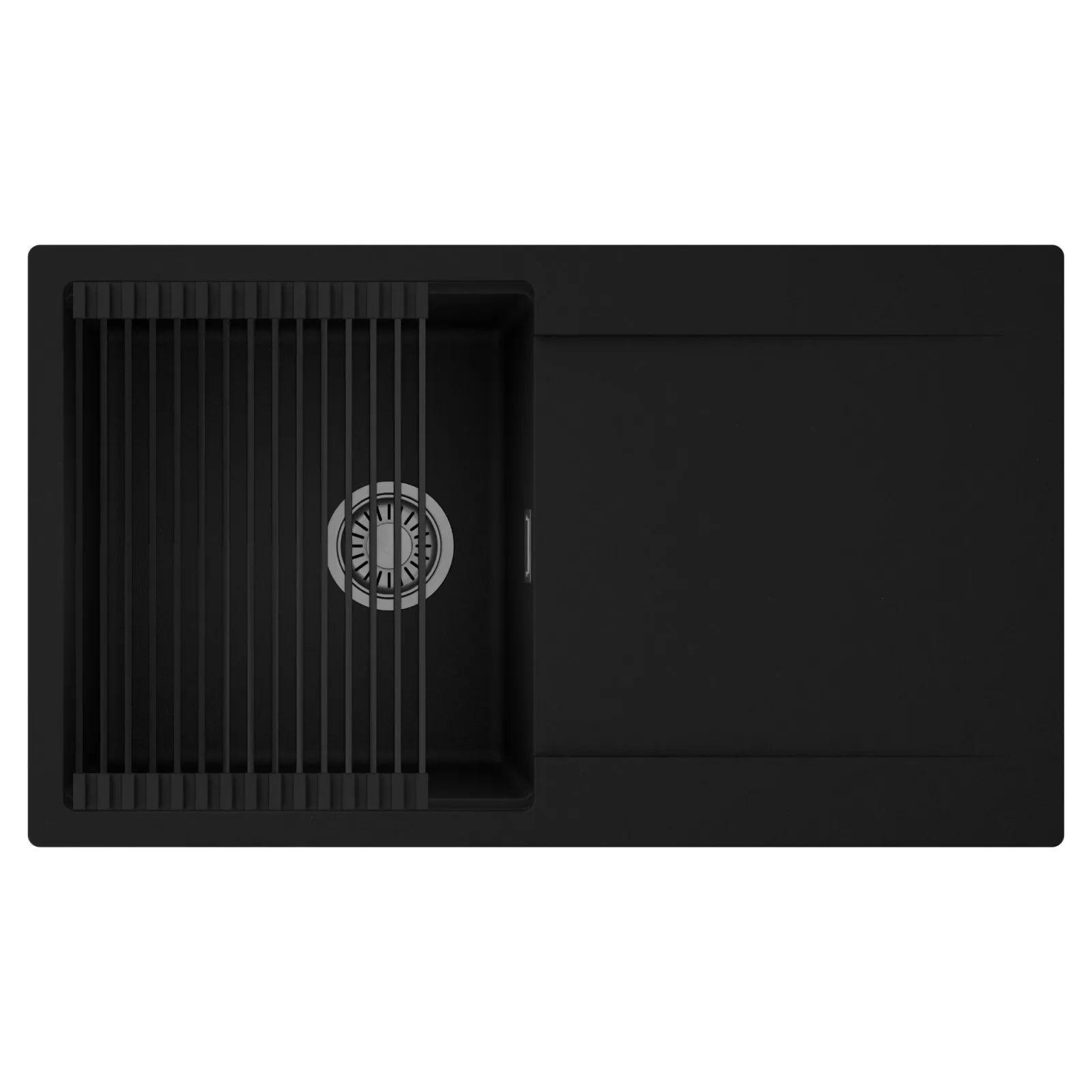 HD Onyx 86 egymedencés mosogatótálca szett, csepegtetőráccsal, matt fekete