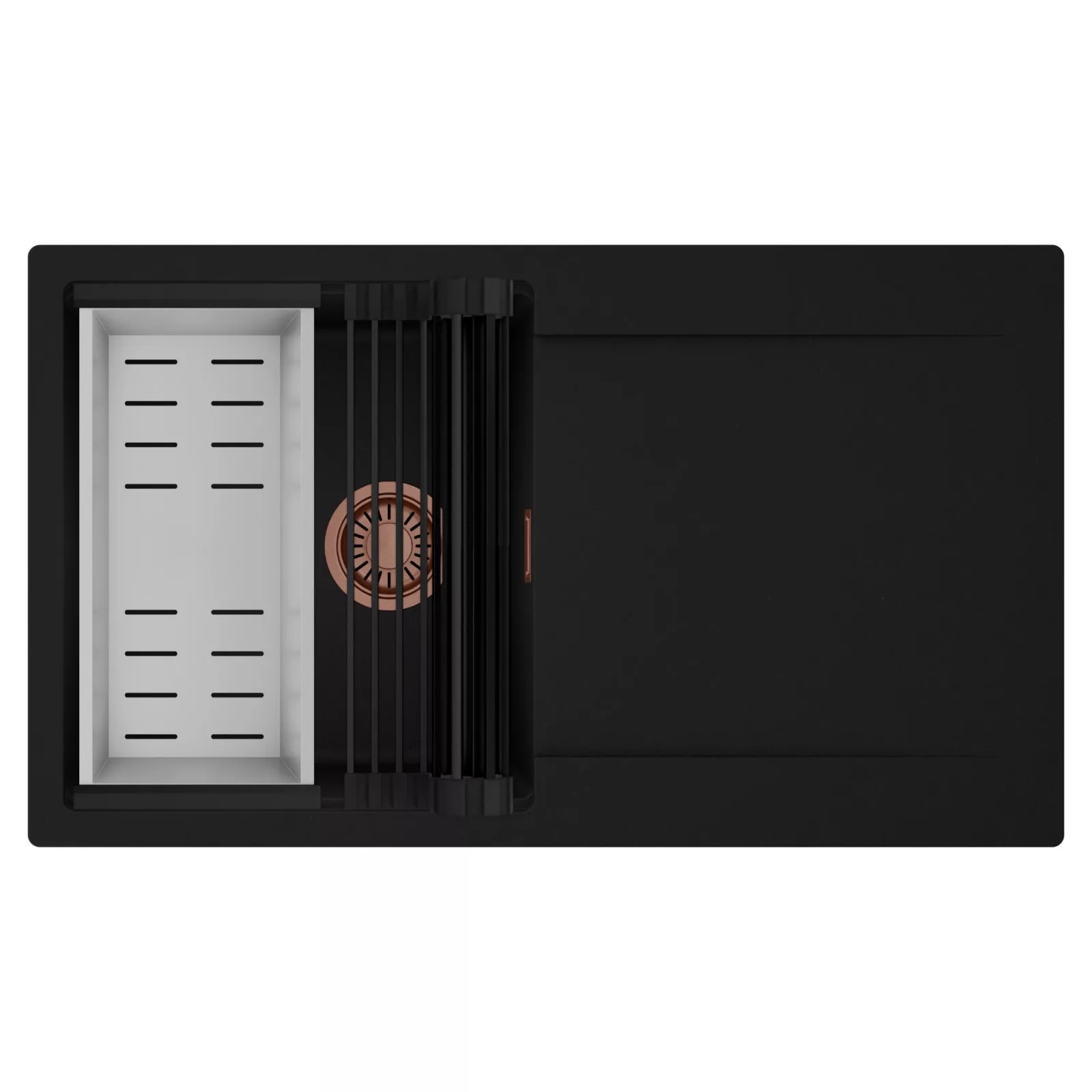 HD Onyx 86 egymedencés mosogatótálca szett, csepegtetőráccsal és kosárral, matt fekete