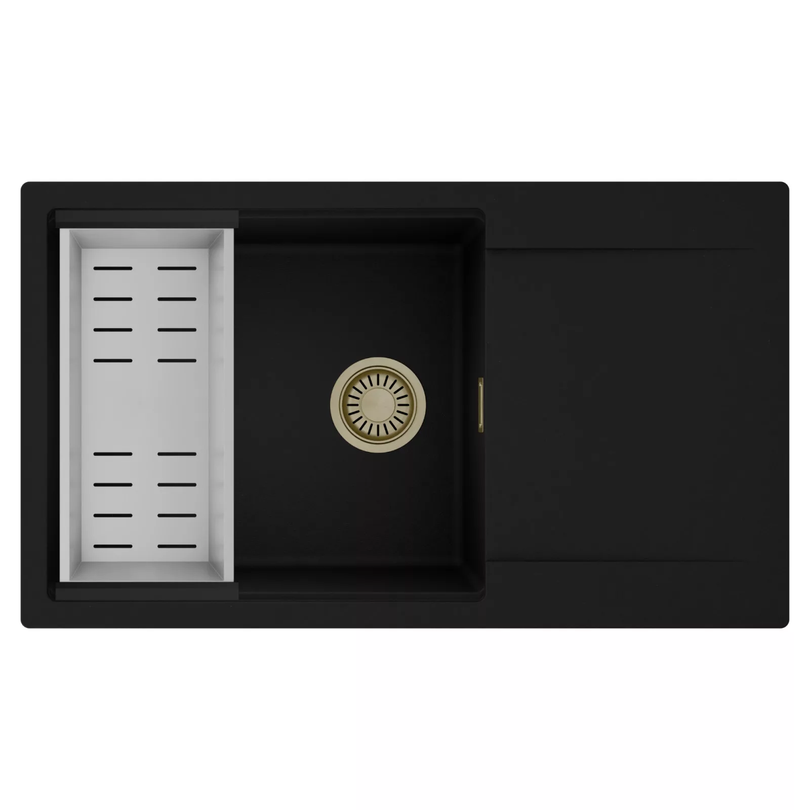 HD Onyx 86-XL egymedencés mosogatótálca szett, csepegtetőkosárral, matt fekete