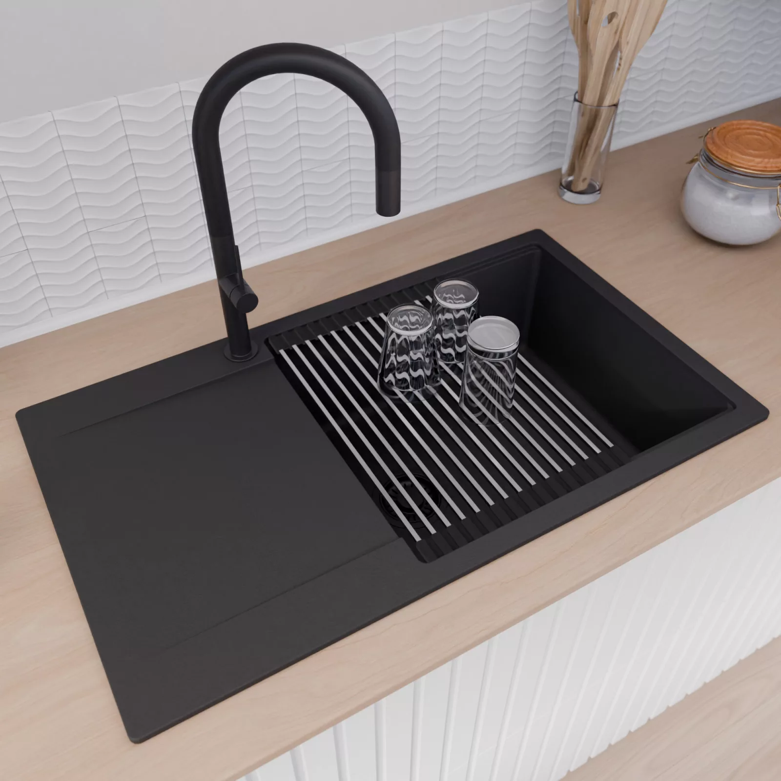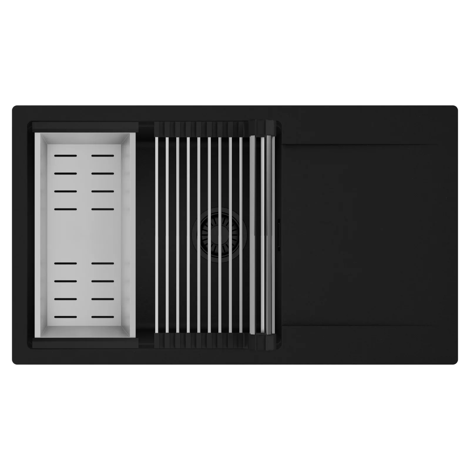 HD Onyx 86-XL egymedencés mosogatótálca szett, csepegtetőráccsal és kosárral, matt fekete