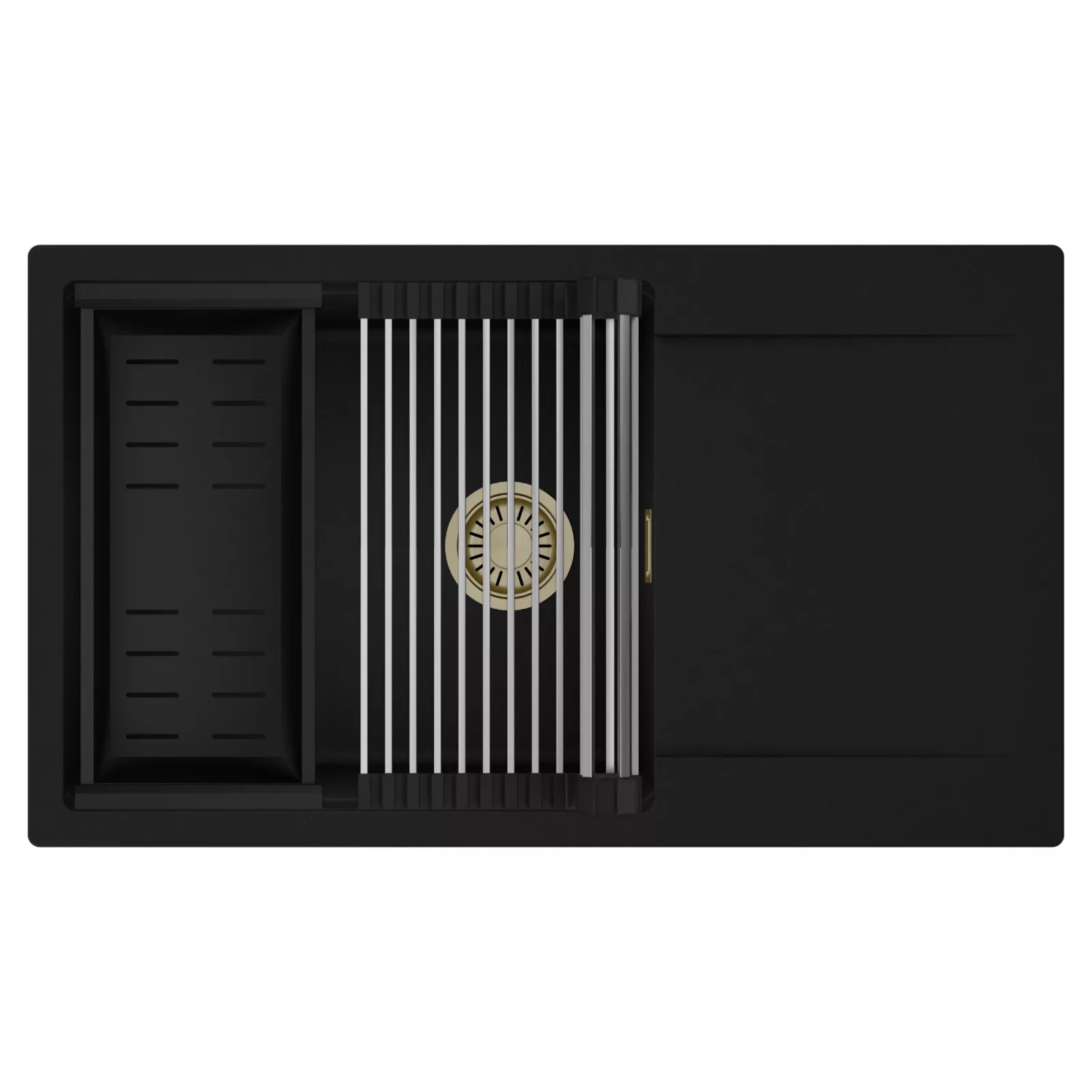 HD Onyx 86-XL egymedencés mosogatótálca szett, csepegtetőráccsal és kosárral, matt fekete