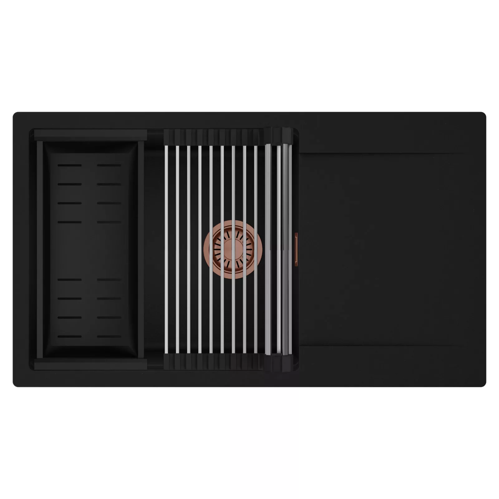 HD Onyx 86-XL egymedencés mosogatótálca szett, csepegtetőráccsal és kosárral, matt fekete