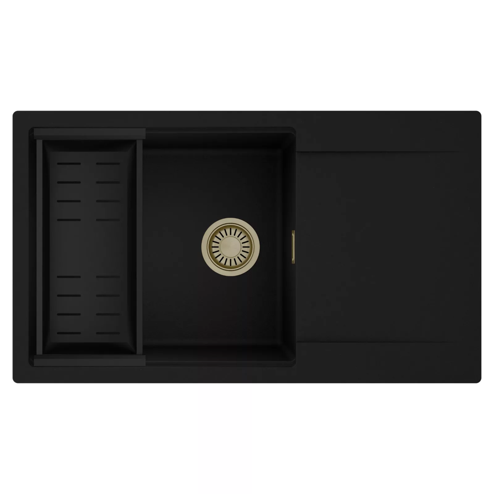 HD Onyx 86-XL egymedencés mosogatótálca szett, csepegtetőkosárral, matt fekete