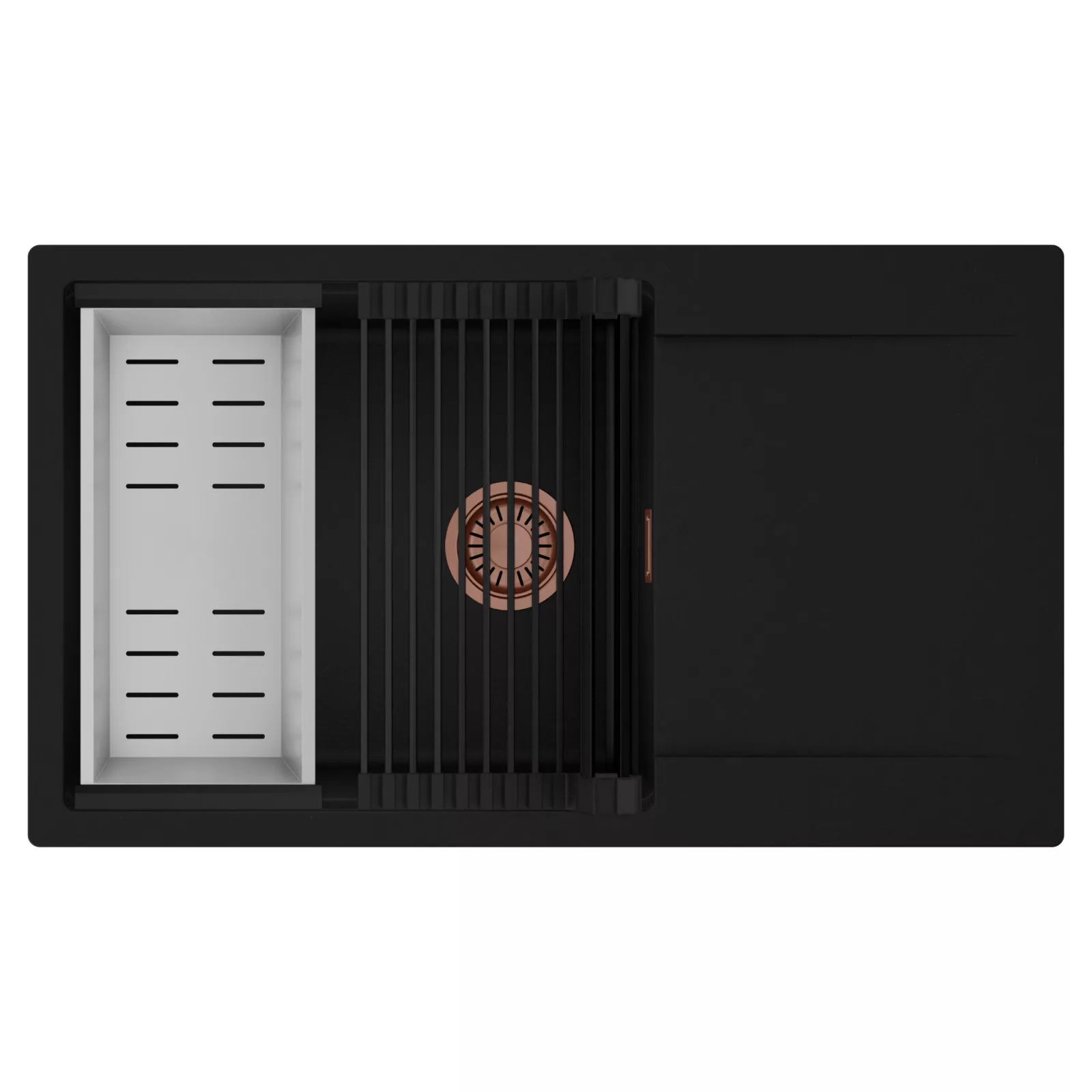 HD Onyx 86-XL egymedencés mosogatótálca szett, csepegtetőráccsal és kosárral, matt fekete