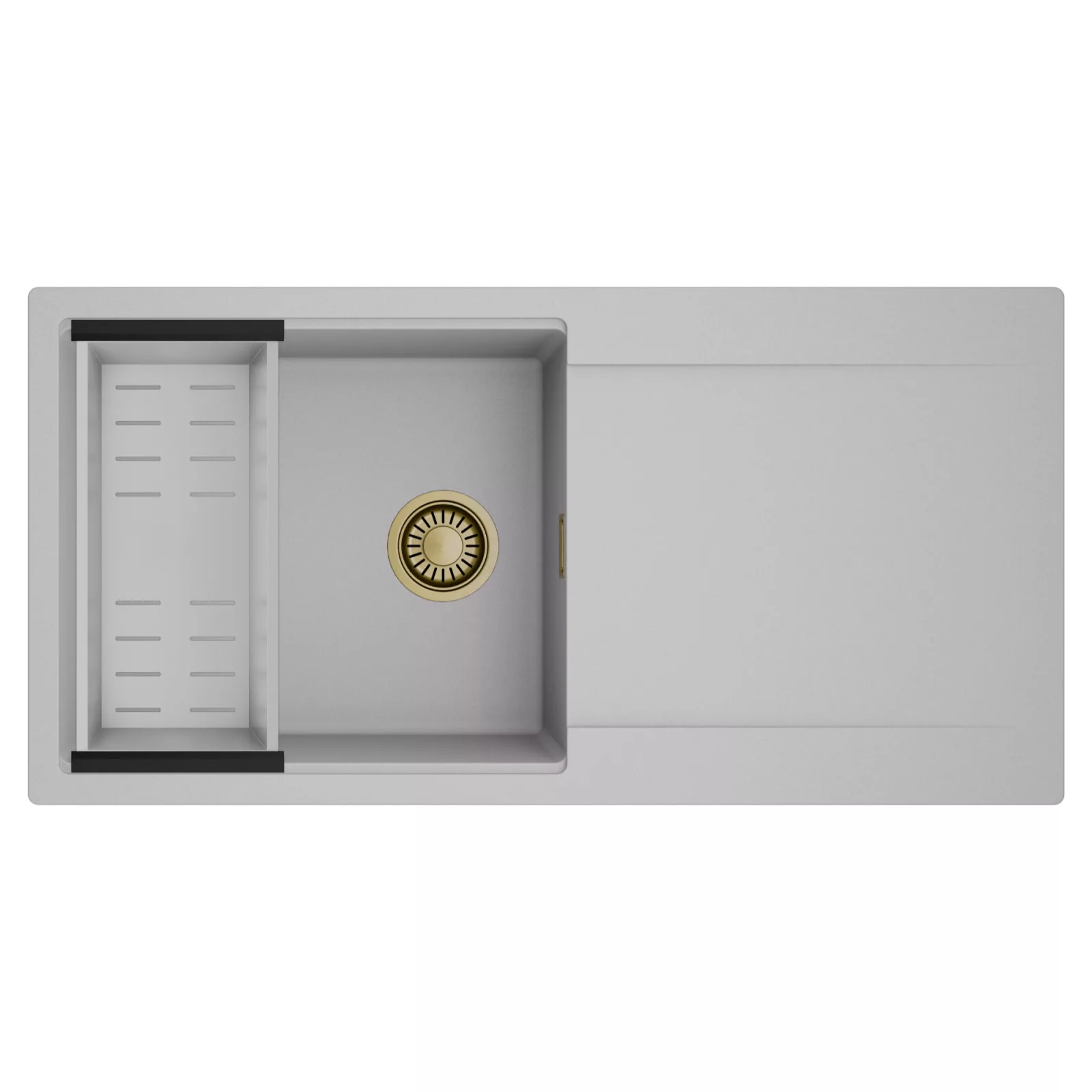 HD Onyx Grey 100 egymedencés mosogatótálca szett, csepegtetőkosárral, alpesi szürke