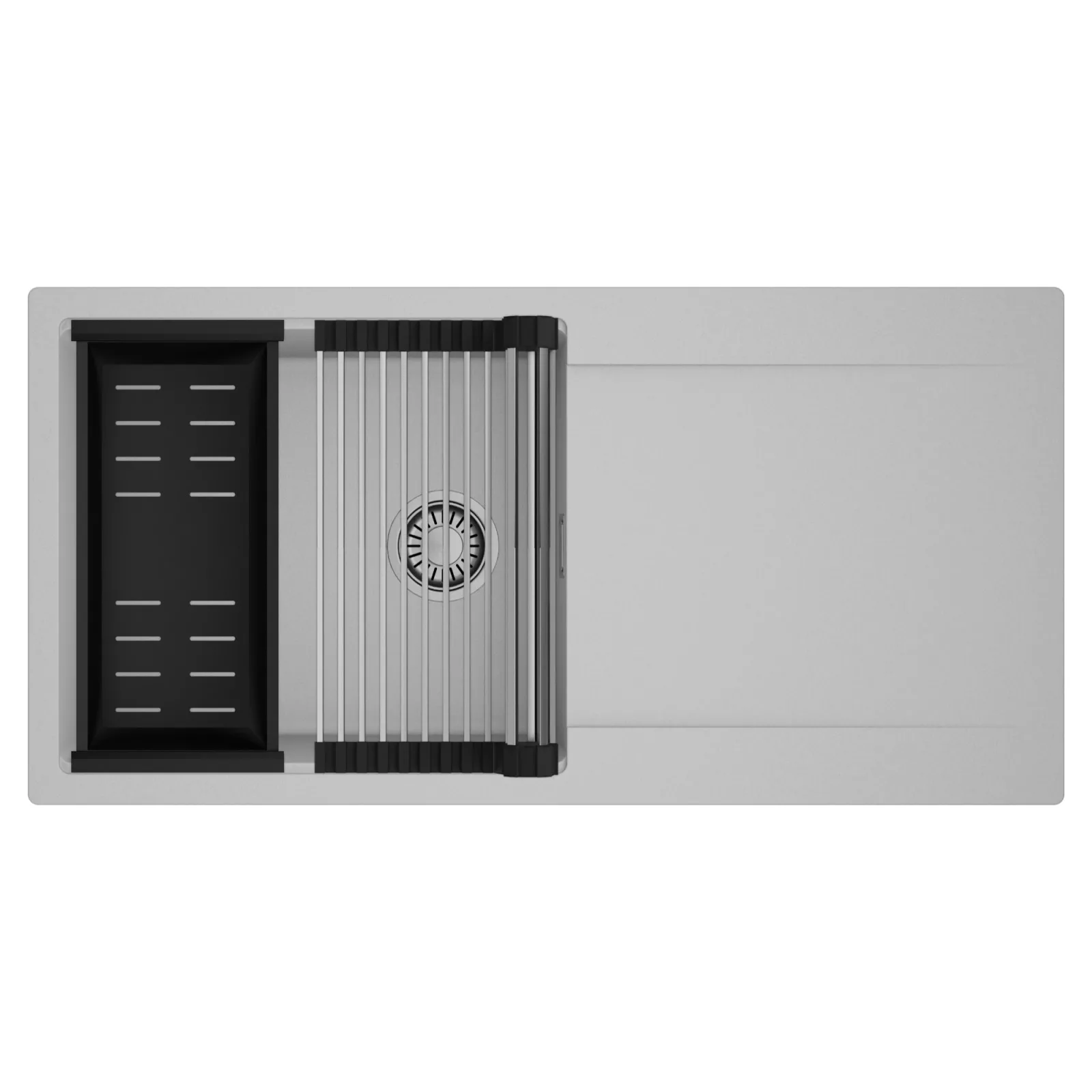 HD Onyx Grey 100 egymedencés mosogatótálca szett, csepegtetőráccsal és kosárral, alpesi szürke
