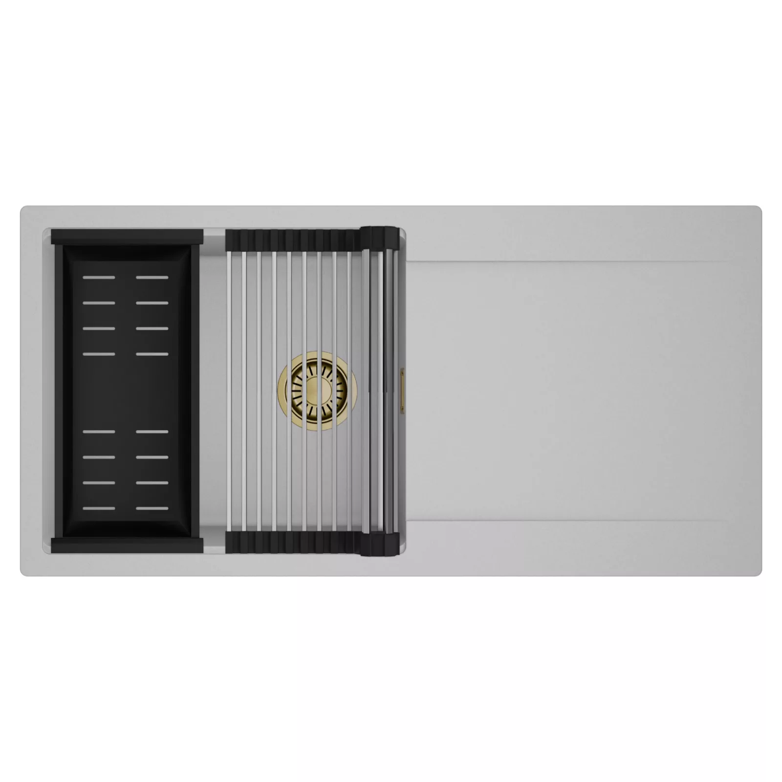HD Onyx Grey 100 egymedencés mosogatótálca szett, csepegtetőráccsal és kosárral, alpesi szürke