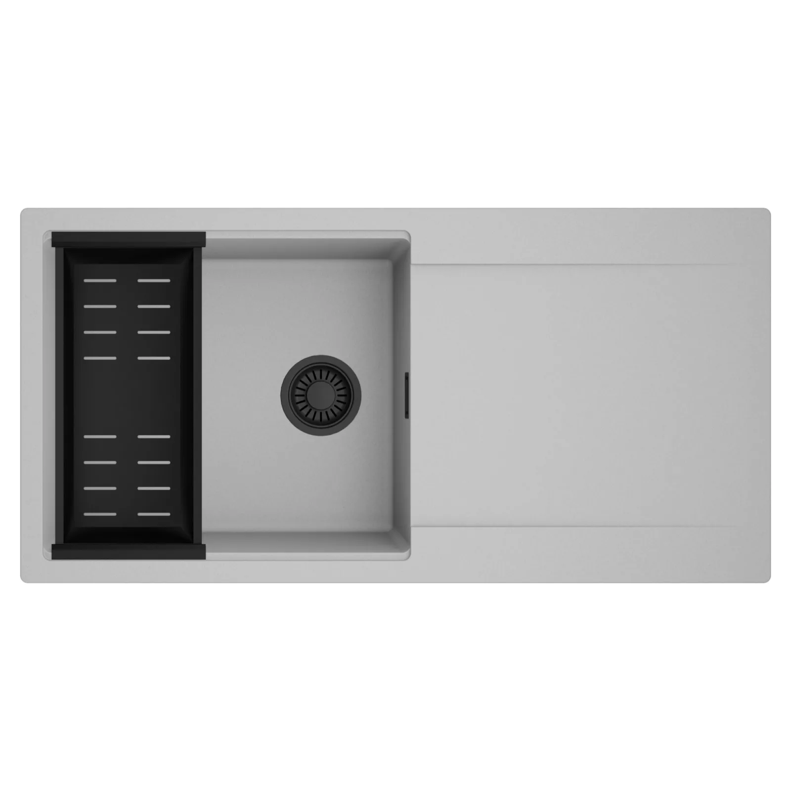 HD Onyx Grey 100 egymedencés mosogatótálca szett, csepegtetőkosárral, alpesi szürke