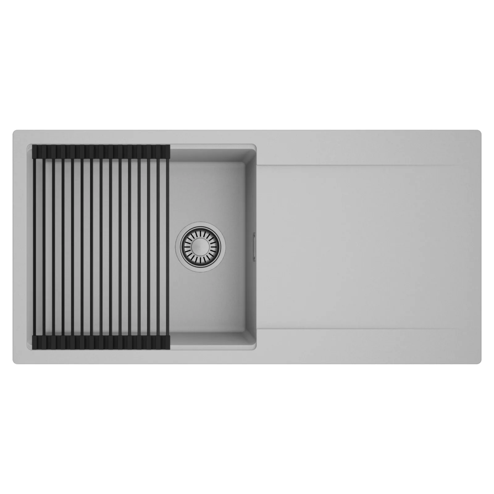 HD Onyx Grey 100 egymedencés mosogatótálca szett, csepegtetőráccsal, alpesi szürke