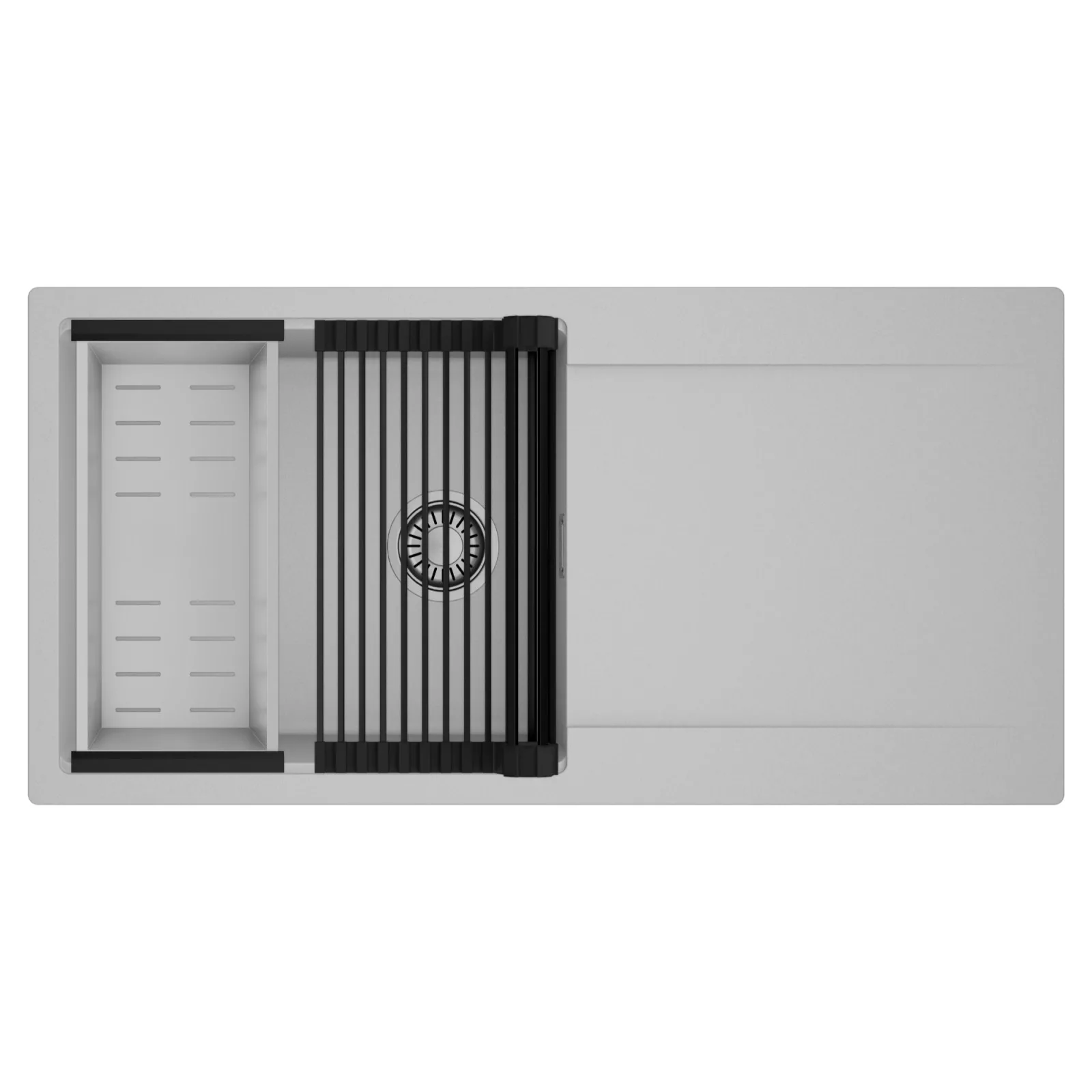 HD Onyx Grey 100 egymedencés mosogatótálca szett, csepegtetőráccsal és kosárral, alpesi szürke