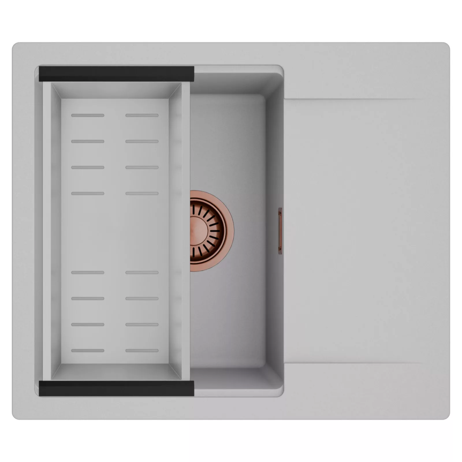 HD Onyx Grey 58 egymedencés mosogatótálca szett, csepegtetőkosárral, alpesi szürke