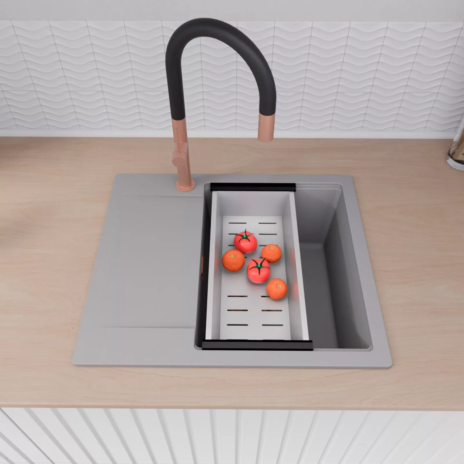 A HomeDepo SmartEdge Többfunkciós Peremrendszer egy intelligensen kialakított peremmegoldás, amely a mosogatót kompakt, mégis teljes értékű konyhai térré alakítja a mindennapok során. A speciális peremkialakítás lehetővé teszi a vágódeszka, a feltekerhető csepegtető rács, a gyümölcsmosó és a csepegtető kosár stabil, biztonságos és kényelmes elhelyezését közvetlenül a mosogató speciális belső peremén. A kiegészítők síkban csúsztathatók és szabadon kombinálhatók, így extra munkafelületet nyersz anélkül, hogy helyet foglalnál a konyhapulton – a mosogató valódi többfunkciós központtá válik.