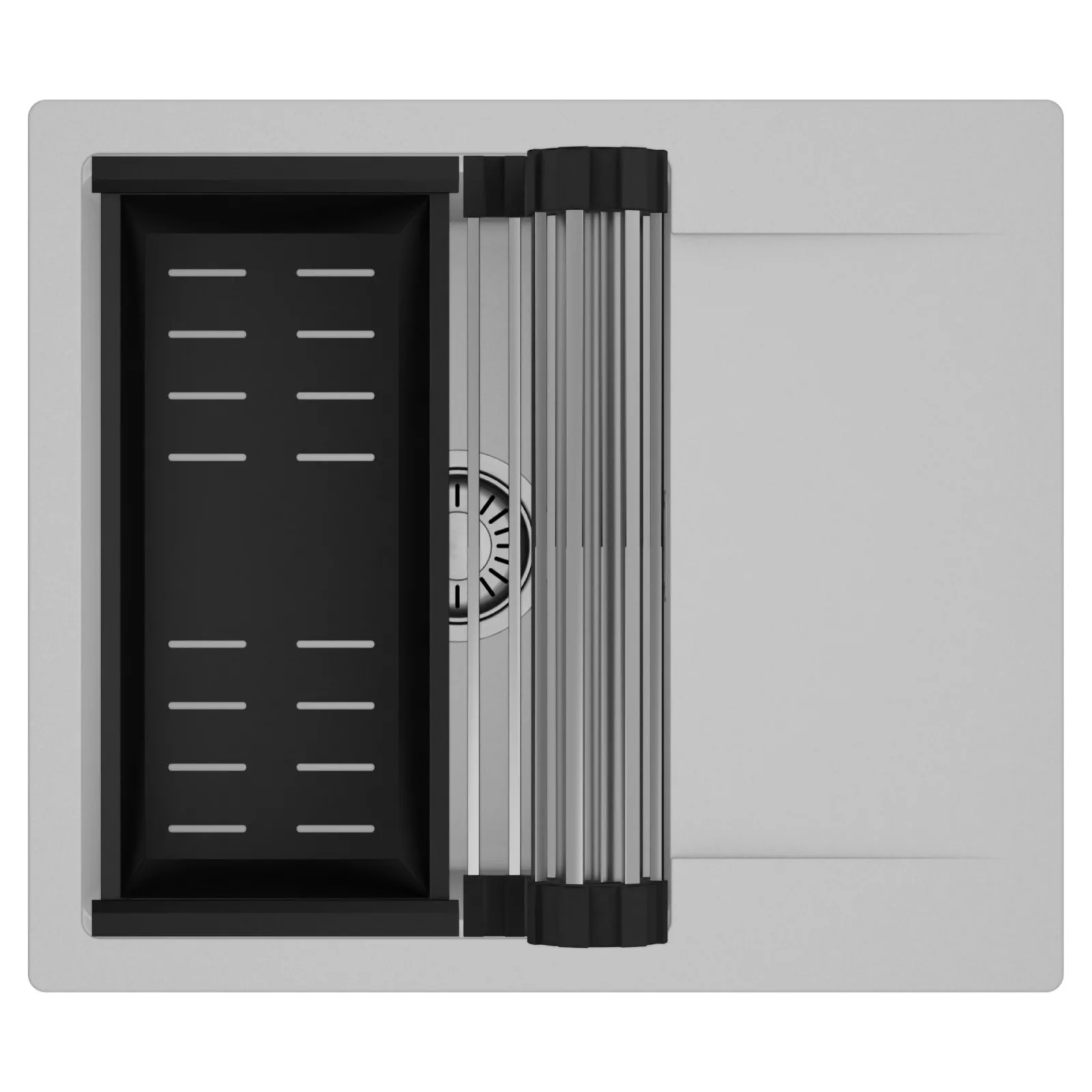 HD Onyx Grey 58 egymedencés mosogatótálca szett, csepegtetőráccsal és kosárral, alpesi szürke