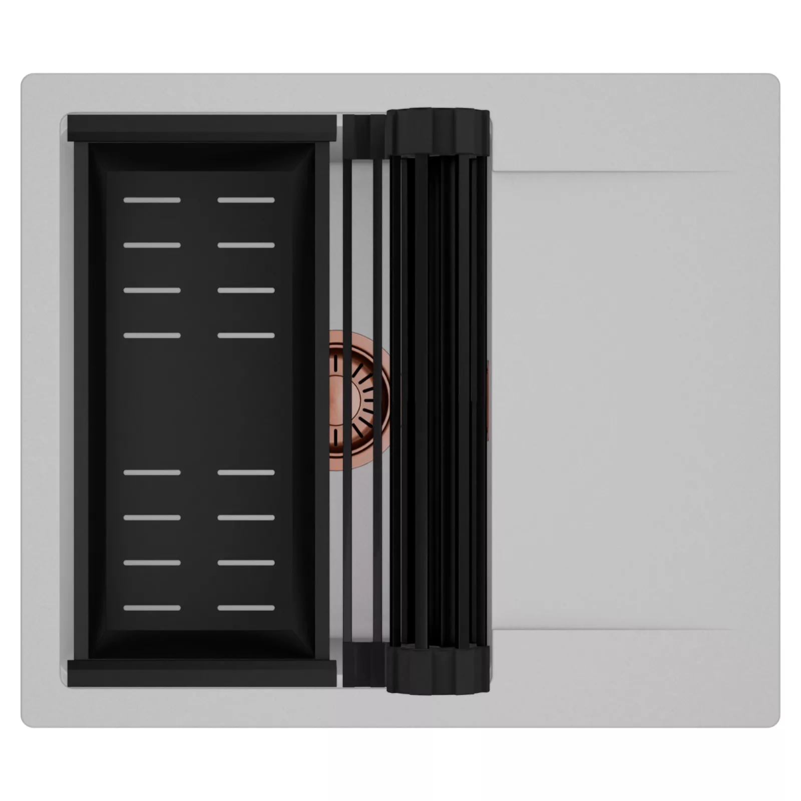 A HomeDepo SmartEdge Többfunkciós Peremrendszer egy intelligensen kialakított peremmegoldás, amely a mosogatót kompakt, mégis teljes értékű konyhai térré alakítja a mindennapok során. A speciális peremkialakítás lehetővé teszi a vágódeszka, a feltekerhető csepegtető rács, a gyümölcsmosó és a csepegtető kosár stabil, biztonságos és kényelmes elhelyezését közvetlenül a mosogató speciális belső peremén. A kiegészítők síkban csúsztathatók és szabadon kombinálhatók, így extra munkafelületet nyersz anélkül, hogy helyet foglalnál a konyhapulton – a mosogató valódi többfunkciós központtá válik.