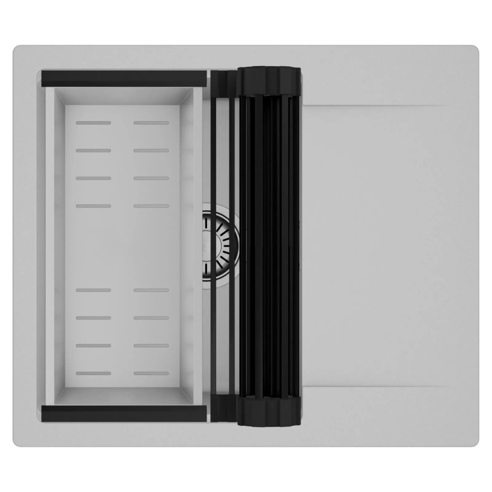 HD Onyx Grey 58 egymedencés mosogatótálca szett, csepegtetőráccsal és kosárral, alpesi szürke