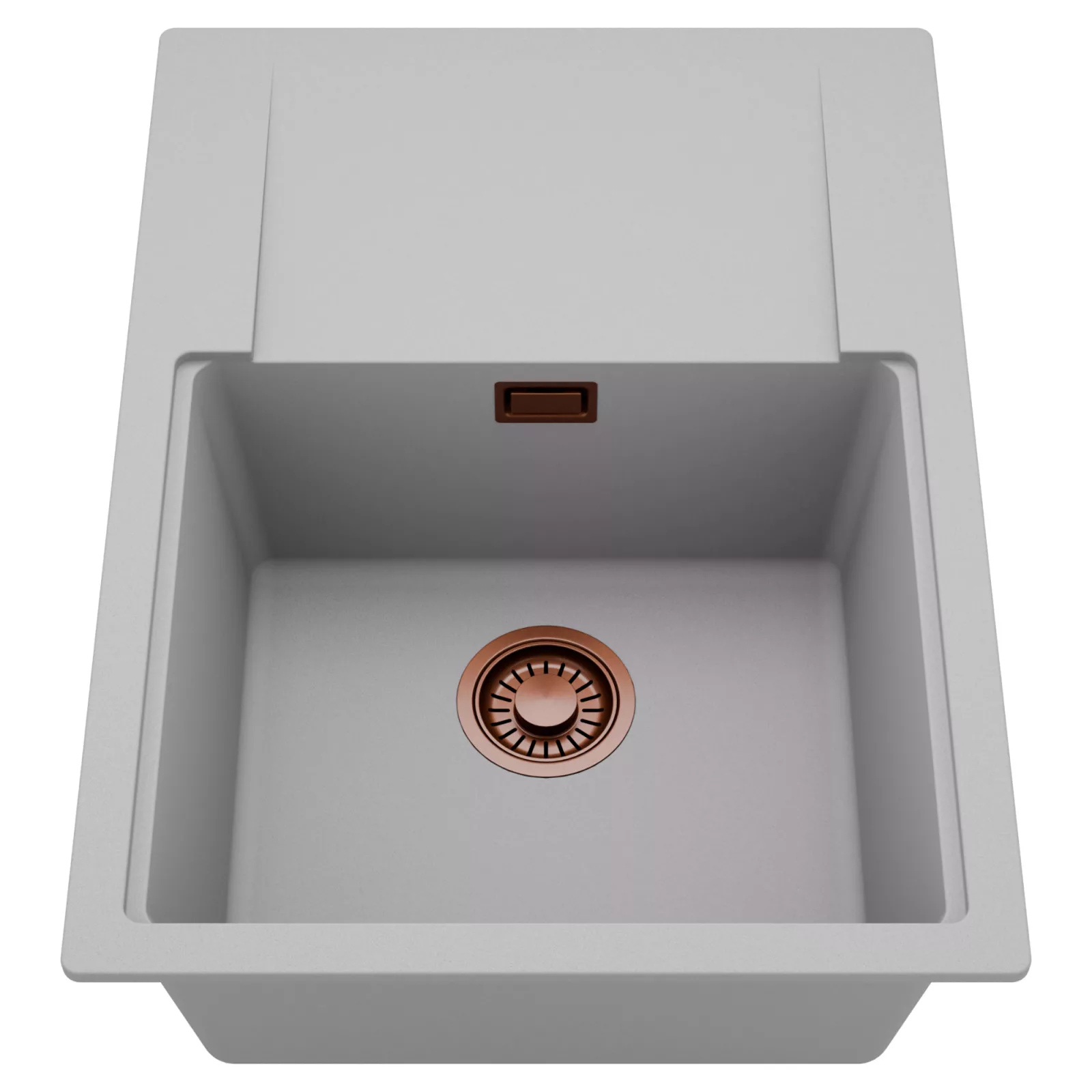 A mosogató prémium minőségű gránit kompozitból készült, amely kiváló ellenállást biztosít a mindennapi használat során keletkező karcolásokkal szemben. A strapabíró gránit felület hosszú távon is megőrzi esztétikus megjelenését, így a mosogató intenzív igénybevétel mellett is megmarad újszerű állapotában.