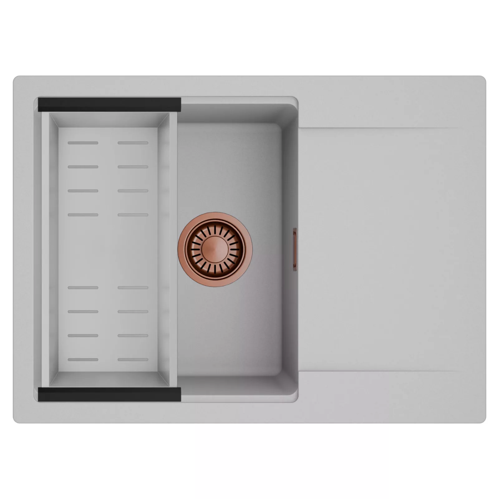 HD Onyx Grey 68-XL egymedencés mosogatótálca szett, csepegtetőkosárral, alpesi szürke