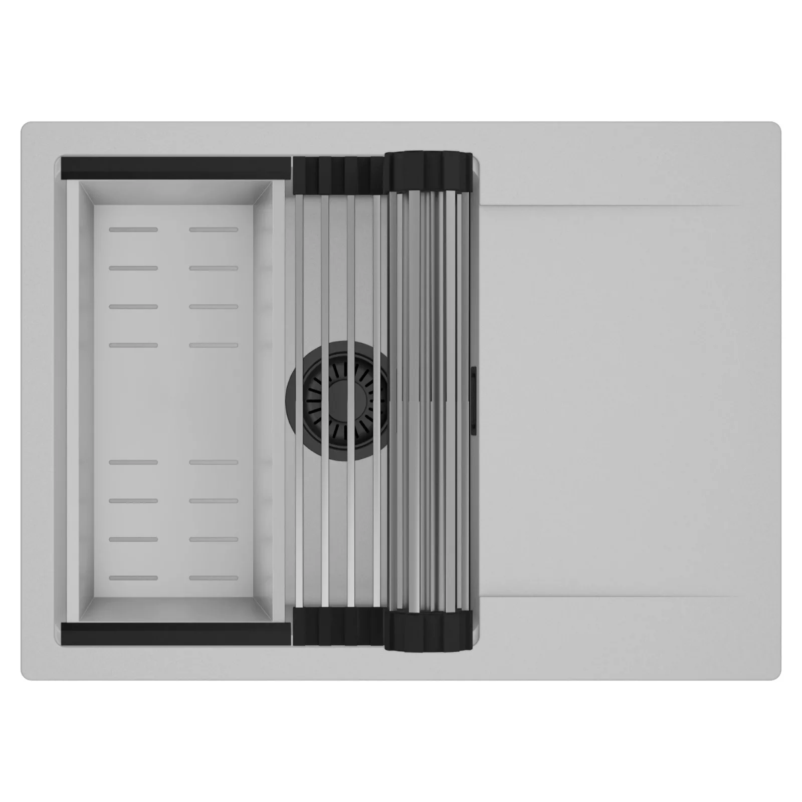 HD Onyx Grey 68-XL egymedencés mosogatótálca szett, csepegtetőráccsal és kosárral, alpesi szürke
