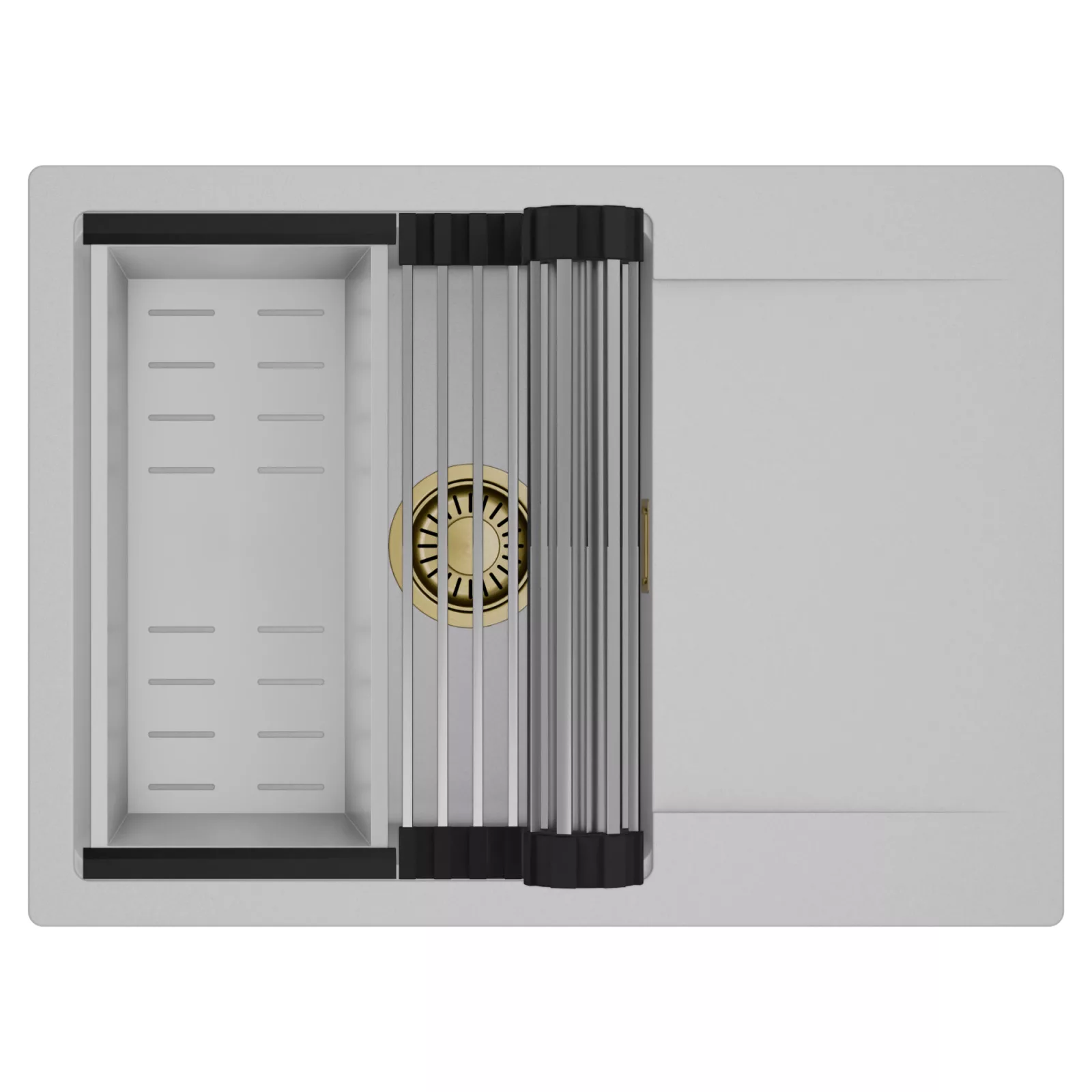 HD Onyx Grey 68-XL egymedencés mosogatótálca szett, csepegtetőráccsal és kosárral, alpesi szürke