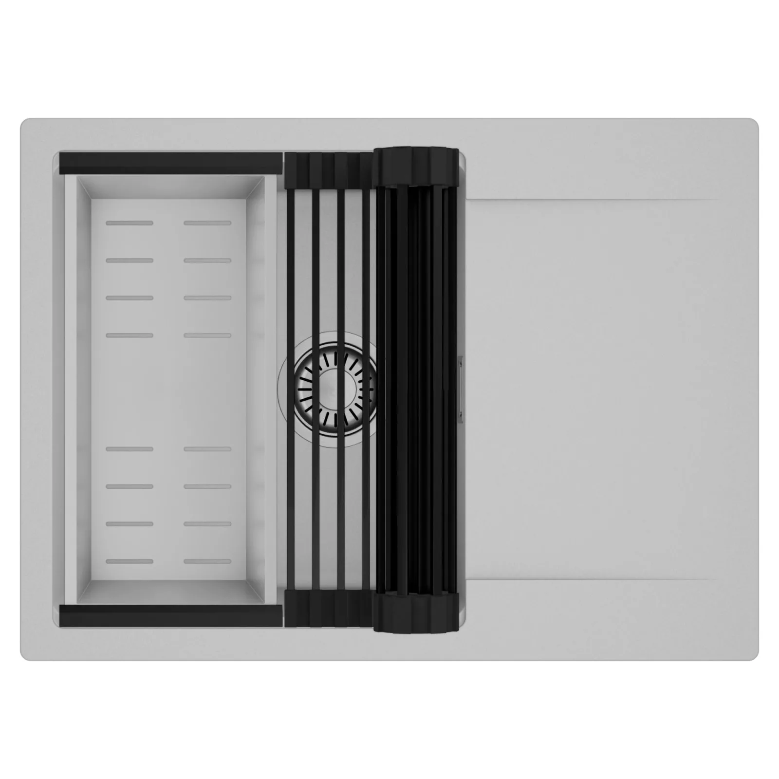 HD Onyx Grey 68-XL egymedencés mosogatótálca szett, csepegtetőráccsal és kosárral, alpesi szürke
