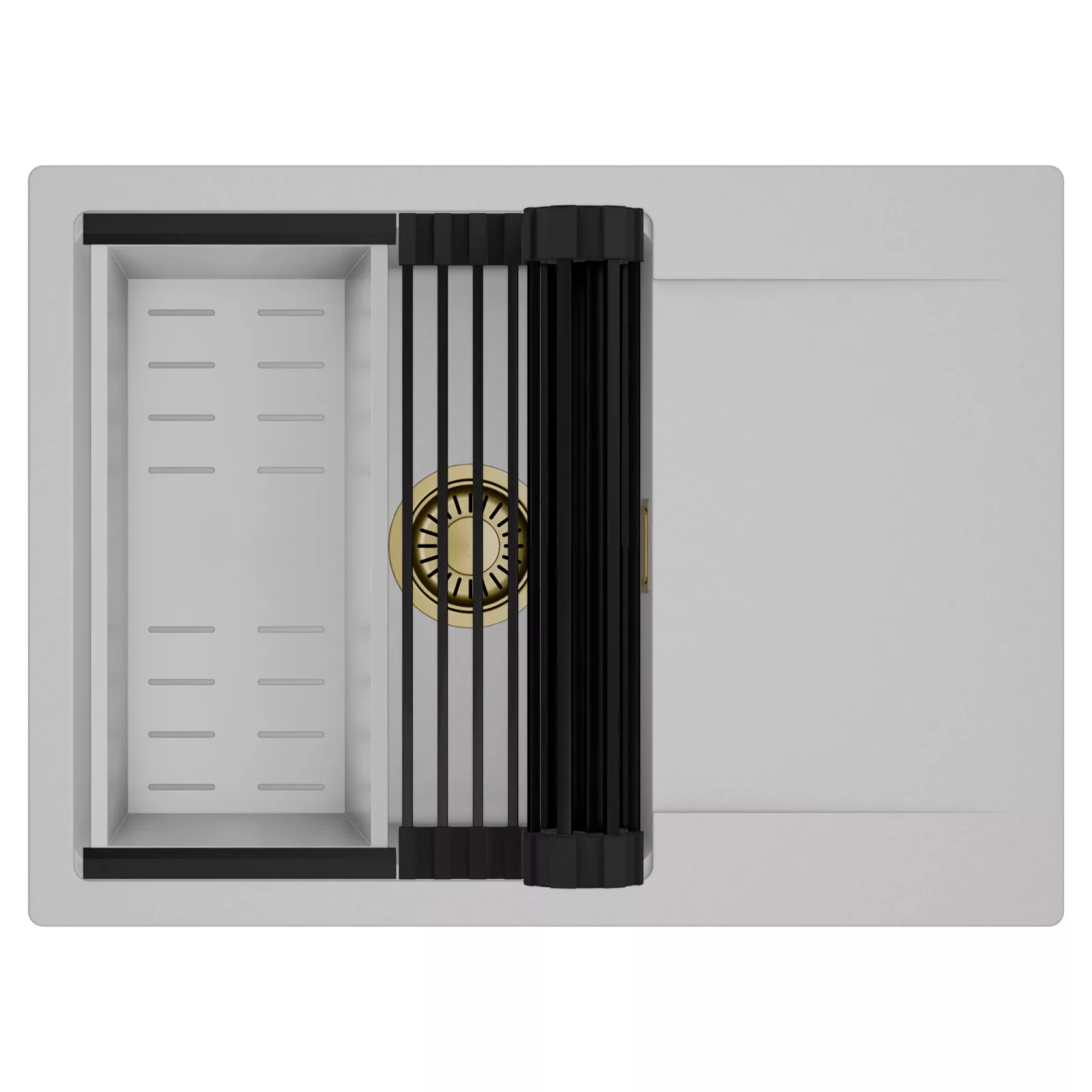 HD Onyx Grey 68-XL egymedencés mosogatótálca szett, csepegtetőráccsal és kosárral, alpesi szürke