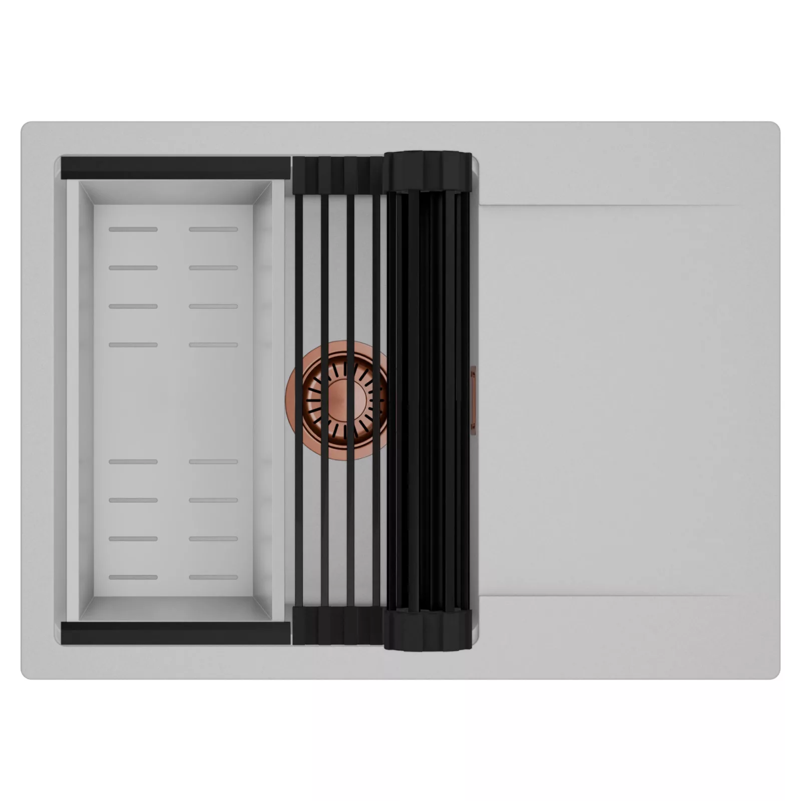 A HomeDepo SmartEdge Többfunkciós Peremrendszer egy intelligensen kialakított peremmegoldás, amely a mosogatót kompakt, mégis teljes értékű konyhai térré alakítja a mindennapok során. A speciális peremkialakítás lehetővé teszi a vágódeszka, a feltekerhető csepegtető rács, a gyümölcsmosó és a csepegtető kosár stabil, biztonságos és kényelmes elhelyezését közvetlenül a mosogató speciális belső peremén. A kiegészítők síkban csúsztathatók és szabadon kombinálhatók, így extra munkafelületet nyersz anélkül, hogy helyet foglalnál a konyhapulton – a mosogató valódi többfunkciós központtá válik.