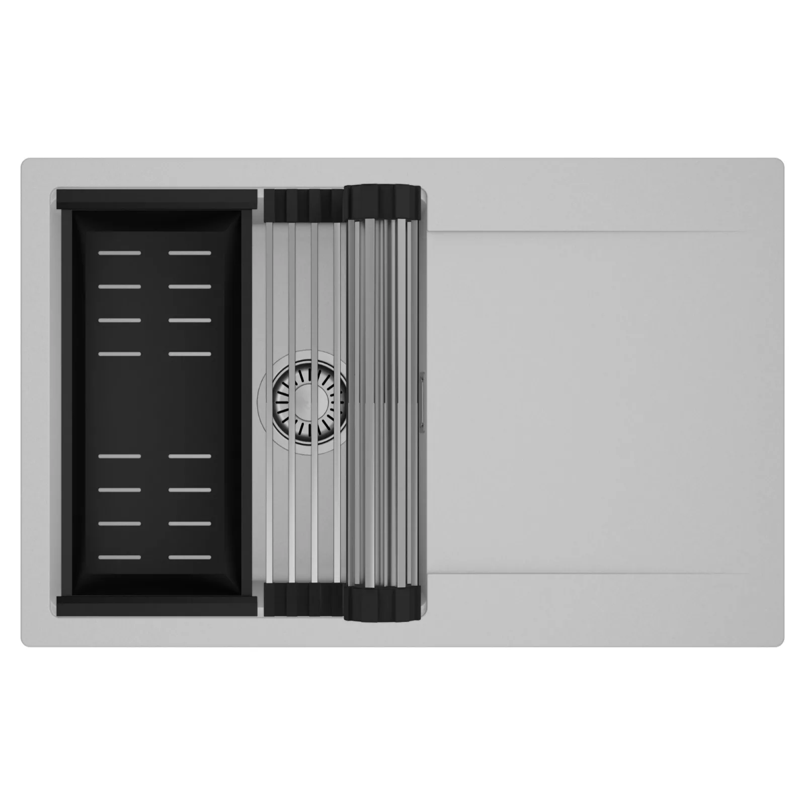 HD Onyx Grey 78 egymedencés mosogatótálca szett, csepegtetőráccsal és kosárral, alpesi szürke