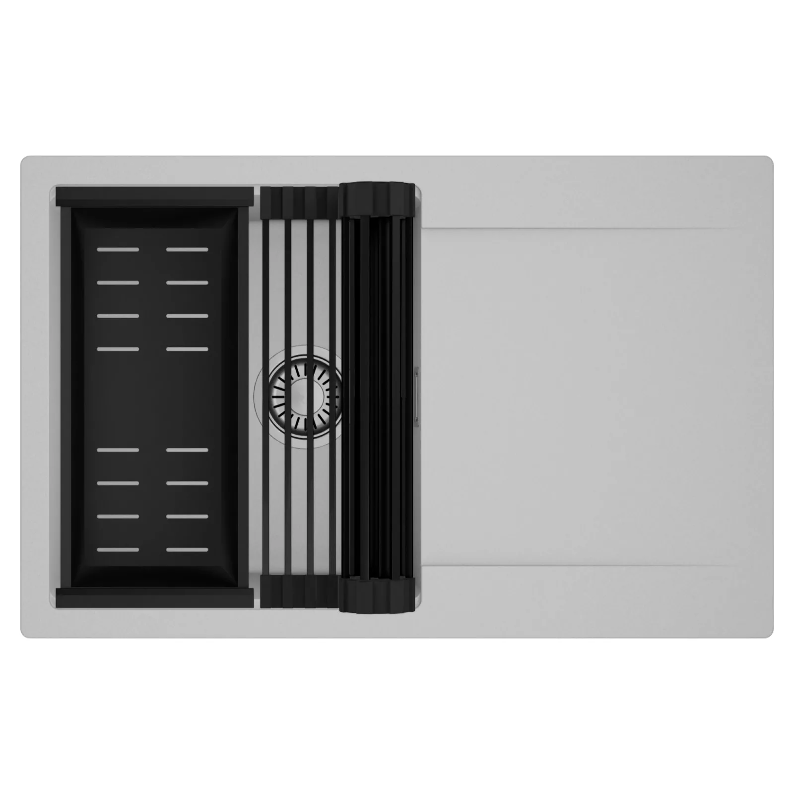 HD Onyx Grey 78 egymedencés mosogatótálca szett, csepegtetőráccsal és kosárral, alpesi szürke