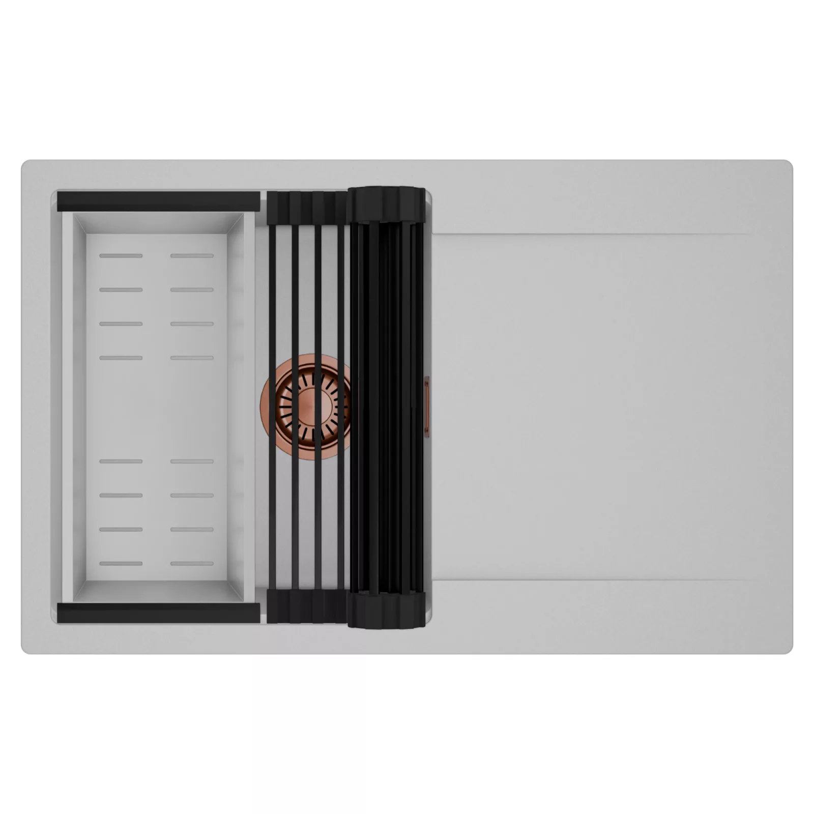 A HomeDepo SmartEdge Többfunkciós Peremrendszer egy intelligensen kialakított peremmegoldás, amely a mosogatót kompakt, mégis teljes értékű konyhai térré alakítja a mindennapok során. A speciális peremkialakítás lehetővé teszi a vágódeszka, a feltekerhető csepegtető rács, a gyümölcsmosó és a csepegtető kosár stabil, biztonságos és kényelmes elhelyezését közvetlenül a mosogató speciális belső peremén. A kiegészítők síkban csúsztathatók és szabadon kombinálhatók, így extra munkafelületet nyersz anélkül, hogy helyet foglalnál a konyhapulton – a mosogató valódi többfunkciós központtá válik.