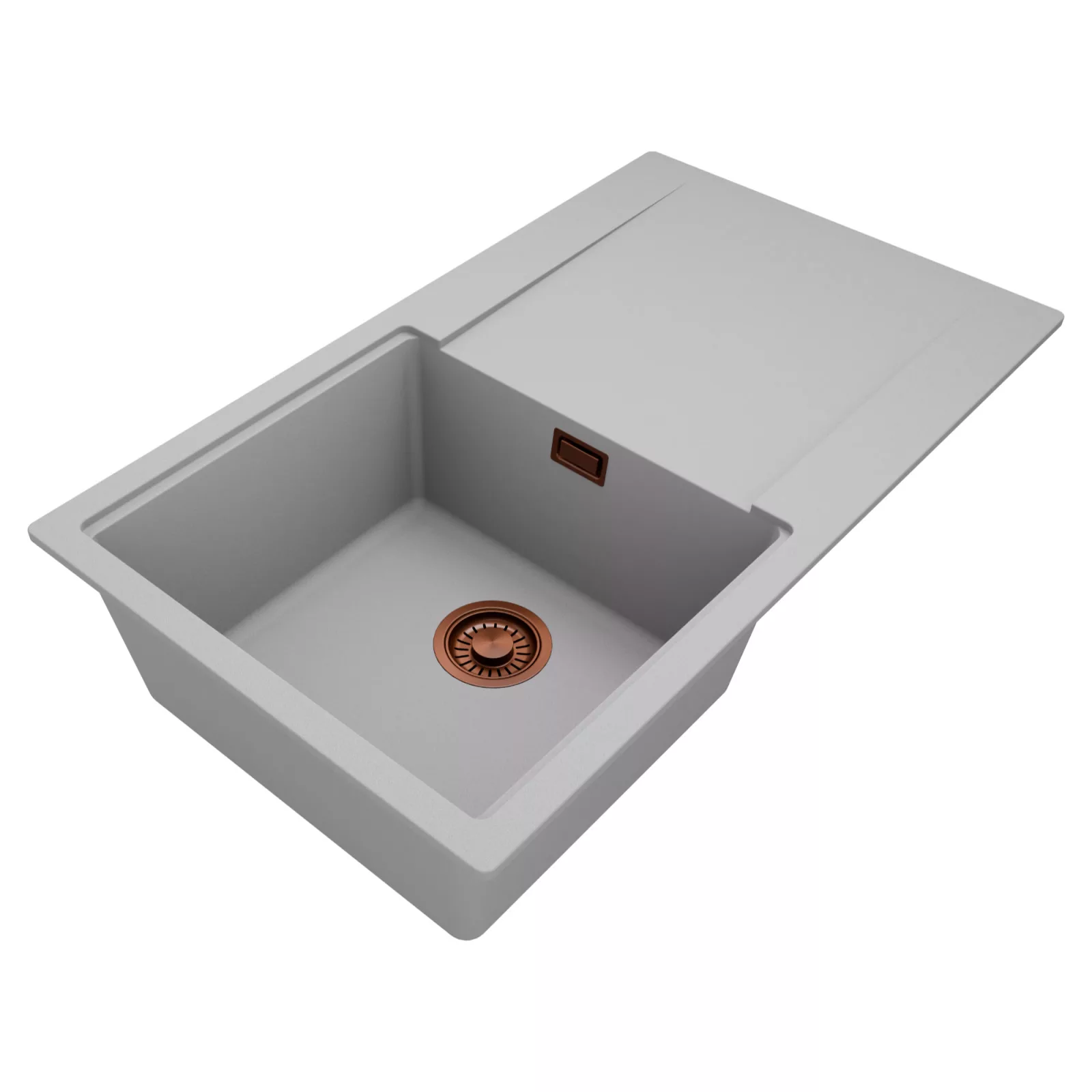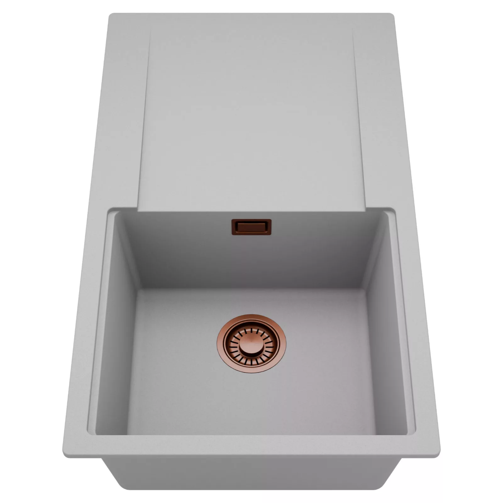A mosogató prémium minőségű gránit kompozitból készült, amely kiváló ellenállást biztosít a mindennapi használat során keletkező karcolásokkal szemben. A strapabíró gránit felület hosszú távon is megőrzi esztétikus megjelenését, így a mosogató intenzív igénybevétel mellett is megmarad újszerű állapotában.