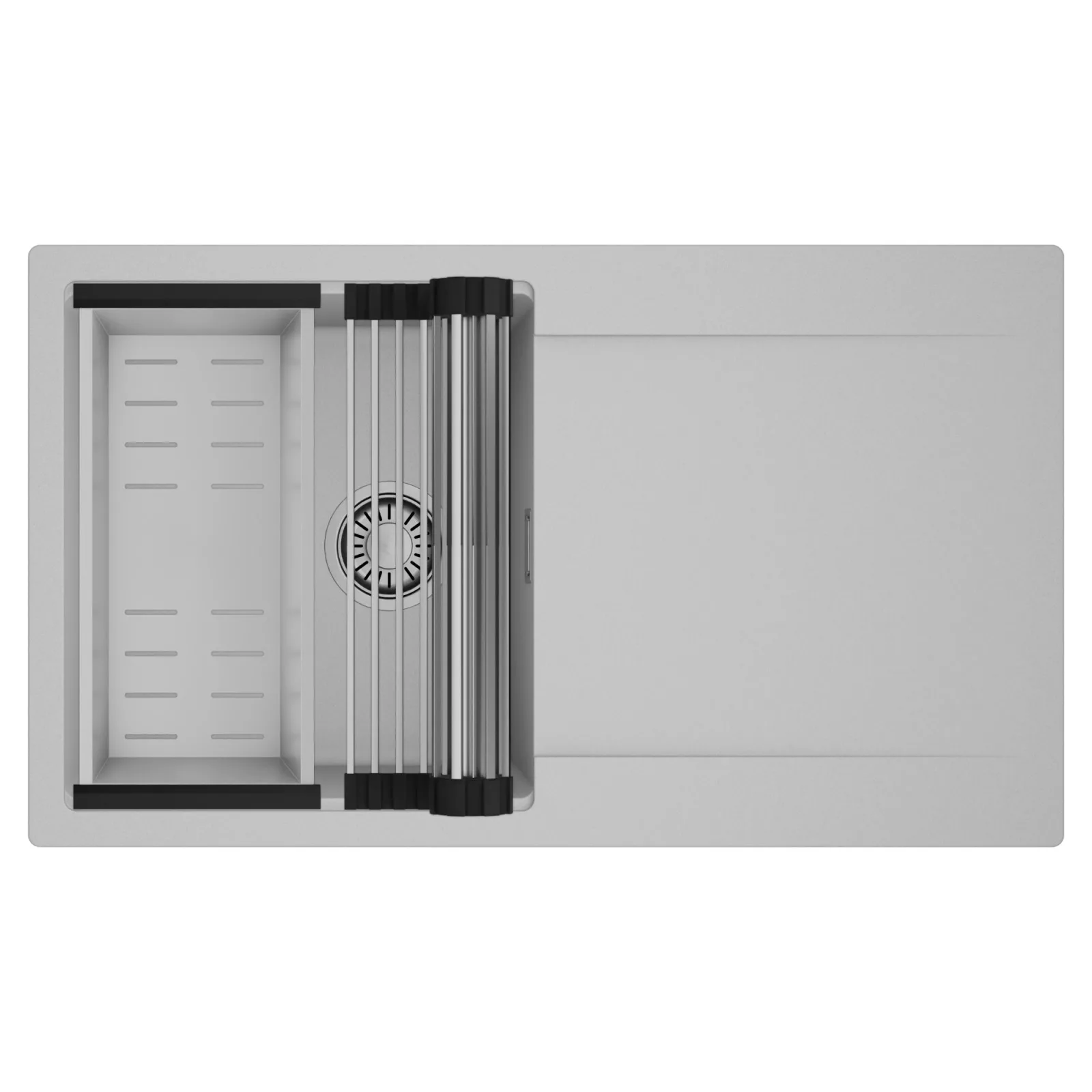 HD Onyx Grey 86 egymedencés mosogatótálca szett, csepegtetőráccsal és kosárral, alpesi szürke