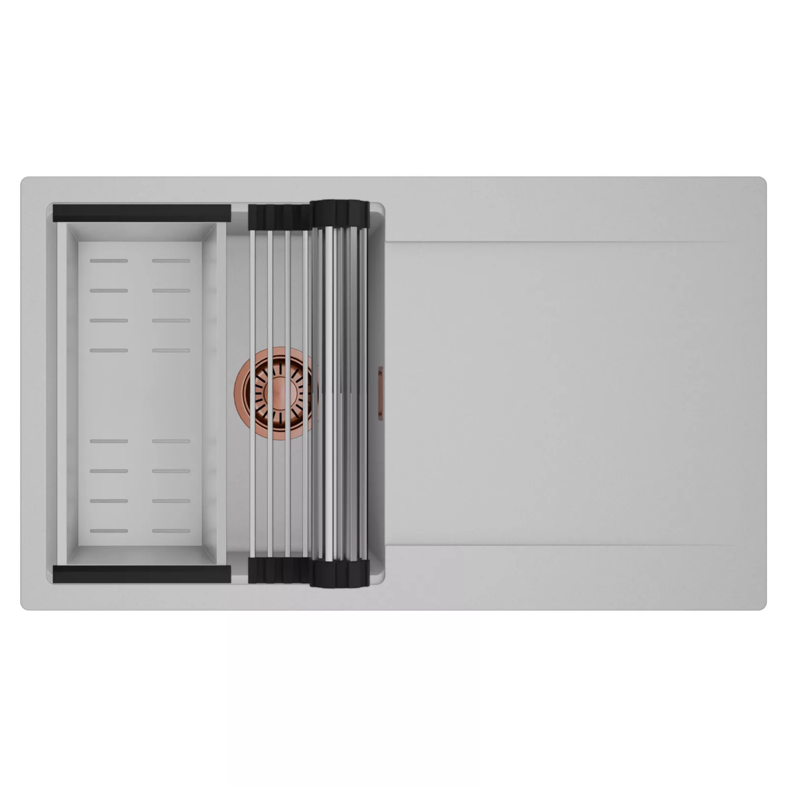 HD Onyx Grey 86 egymedencés mosogatótálca szett, csepegtetőráccsal és kosárral, alpesi szürke