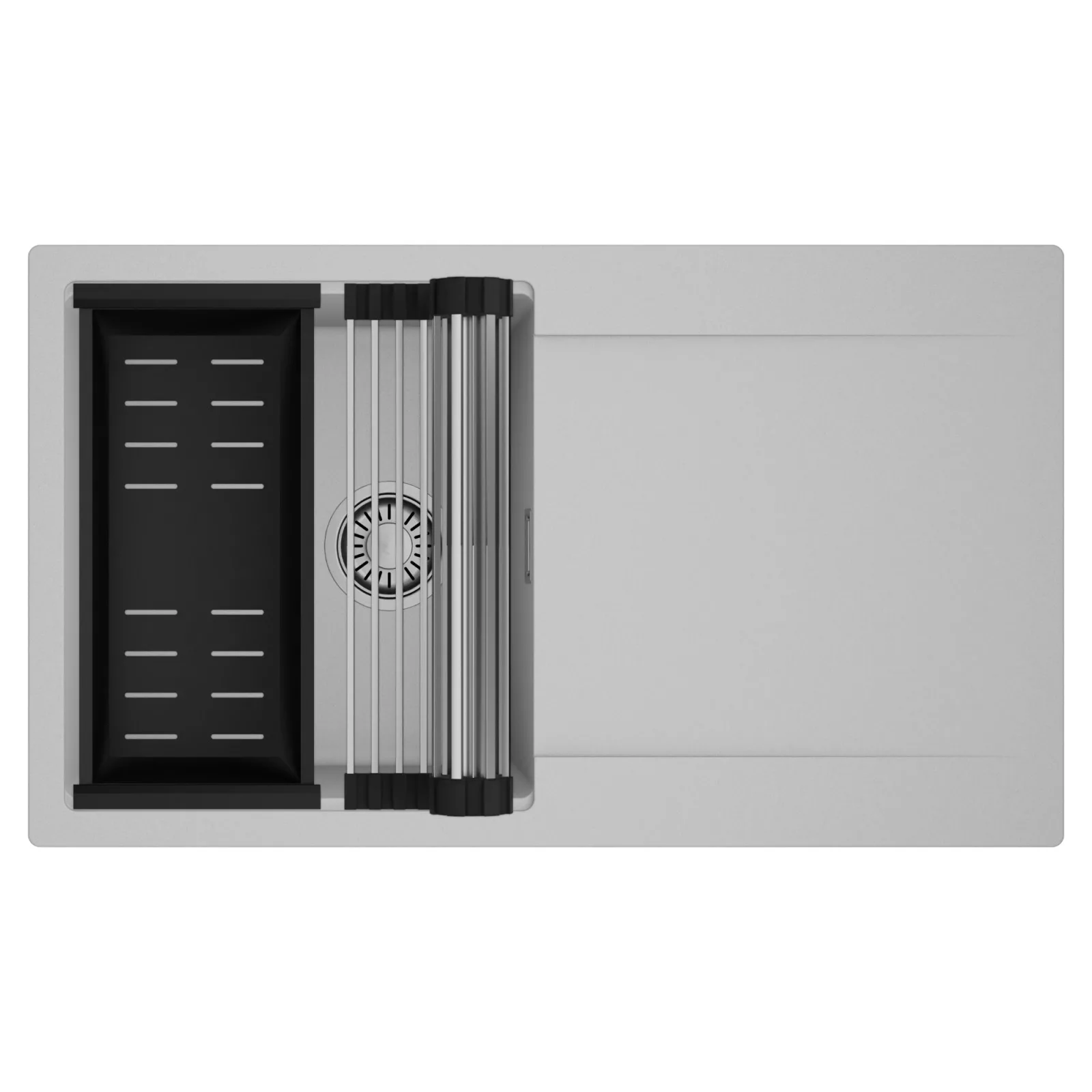 HD Onyx Grey 86 egymedencés mosogatótálca szett, csepegtetőráccsal és kosárral, alpesi szürke