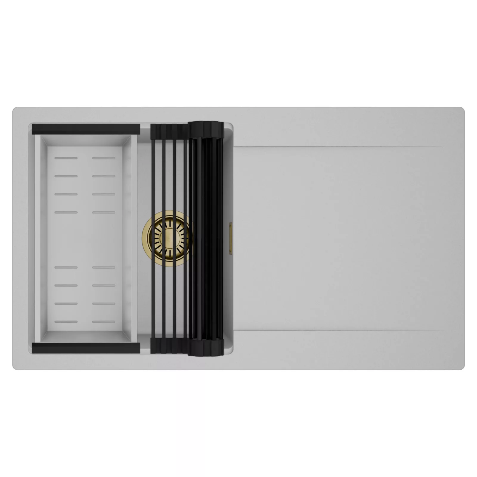 HD Onyx Grey 86 egymedencés mosogatótálca szett, csepegtetőráccsal és kosárral, alpesi szürke