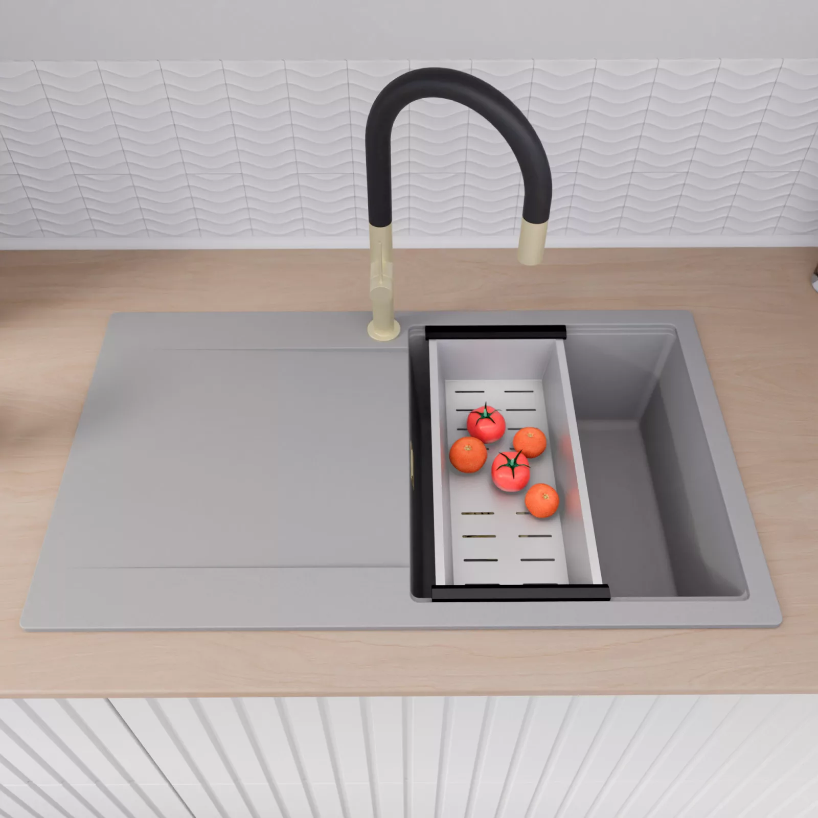 A mosogató prémium minőségű gránit kompozitból készült. Letisztult megjelenése mellett rendkívül praktikus, így bármilyen stílusú konyhába harmonikusan illeszkedik. A strapabíró gránit anyag hosszú távon is megbízható használatot garantál.