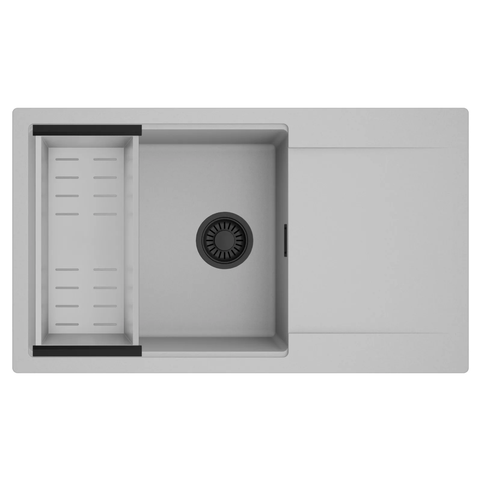 HD Onyx Grey 86-XL egymedencés mosogatótálca szett, csepegtetőkosárral, alpesi szürke
