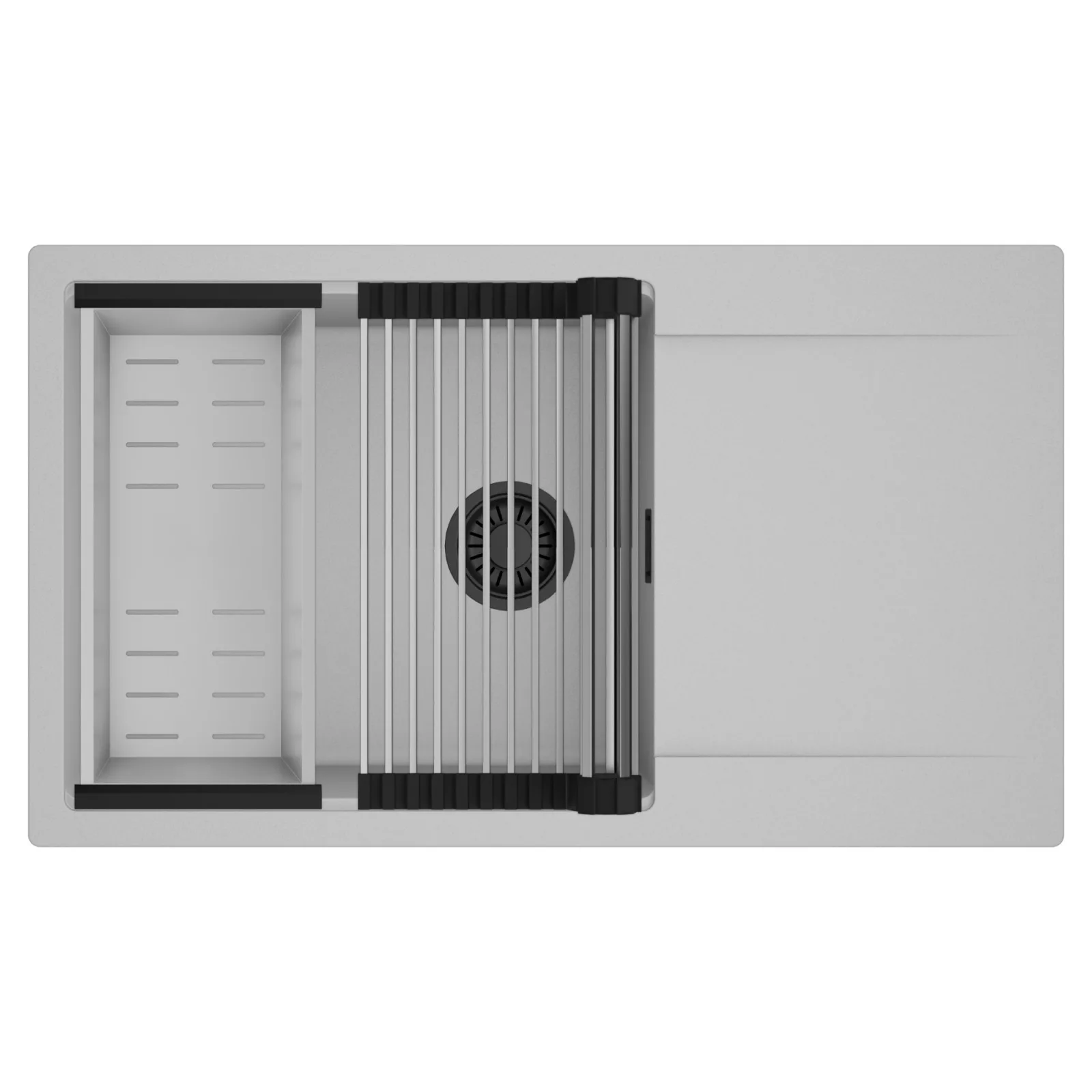 HD Onyx Grey 86-XL egymedencés mosogatótálca szett, csepegtetőráccsal és kosárral, alpesi szürke