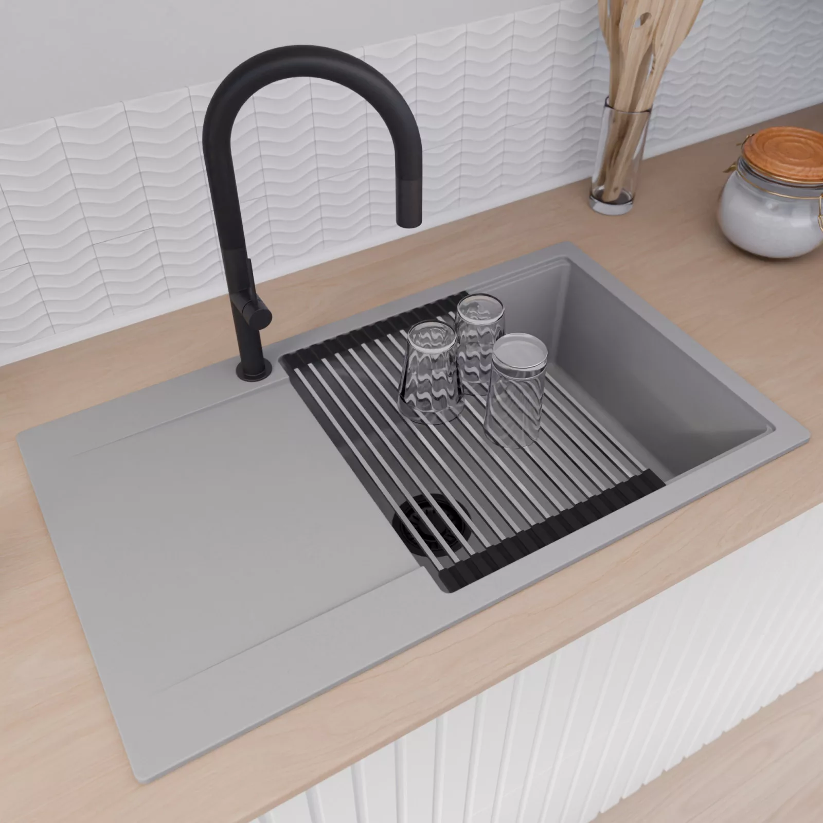 A mosogató prémium minőségű gránit kompozitból készült. Letisztult megjelenése mellett rendkívül praktikus, így bármilyen stílusú konyhába harmonikusan illeszkedik. A strapabíró gránit anyag hosszú távon is megbízható használatot garantál.