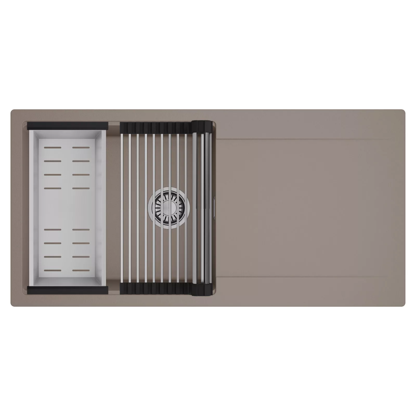 HD Onyx Tortora 100 egymedencés mosogatótálca szett, csepegtetőráccsal és kosárral, tortora