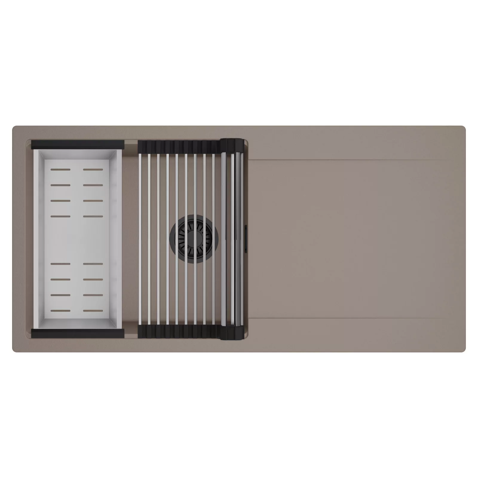 HD Onyx Tortora 100 egymedencés mosogatótálca szett, csepegtetőráccsal és kosárral, tortora