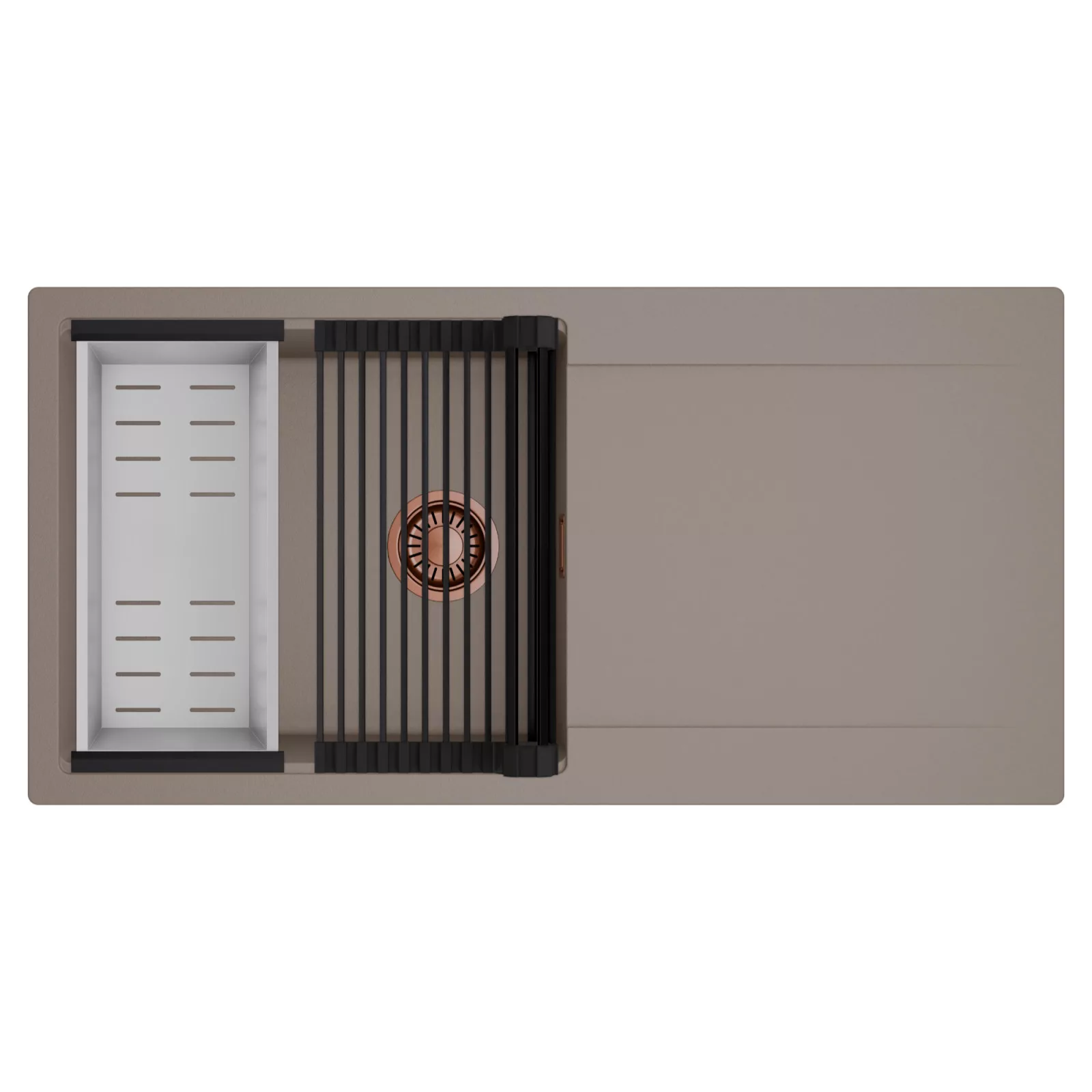 HD Onyx Tortora 100 egymedencés mosogatótálca szett, csepegtetőráccsal és kosárral, tortora