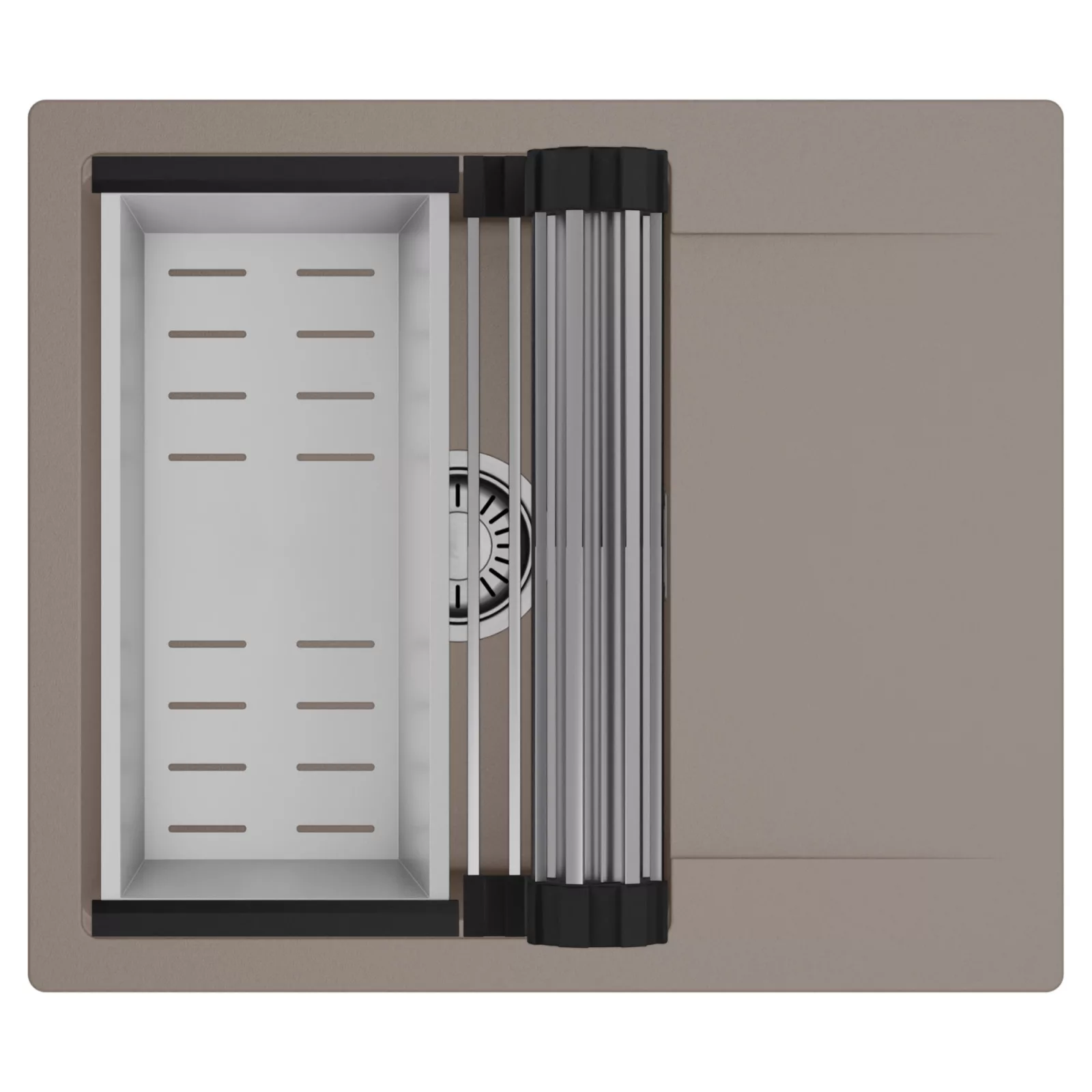 HD Onyx Tortora 58 egymedencés mosogatótálca szett, csepegtetőráccsal és kosárral, tortora