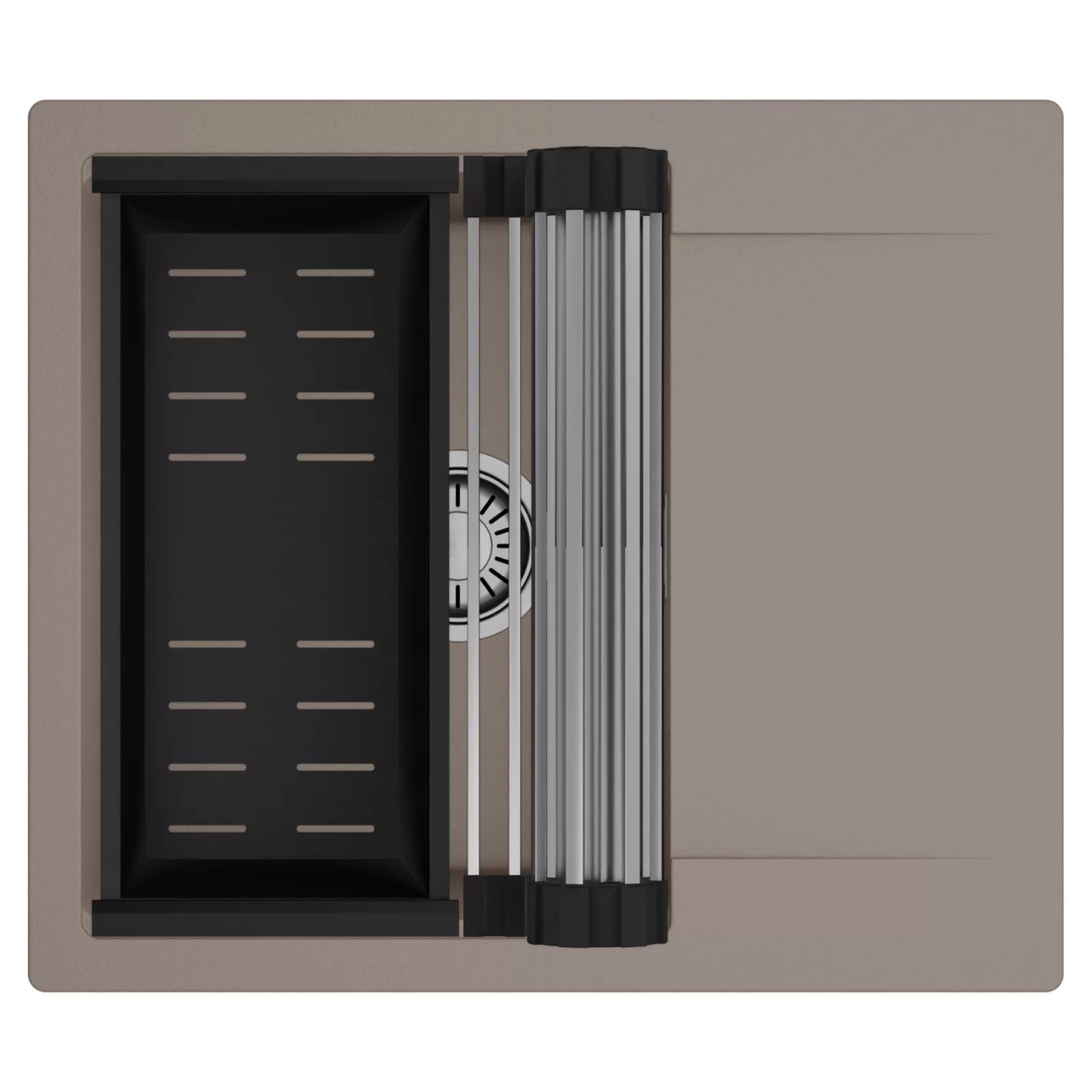 HD Onyx Tortora 58 egymedencés mosogatótálca szett, csepegtetőráccsal és kosárral, tortora