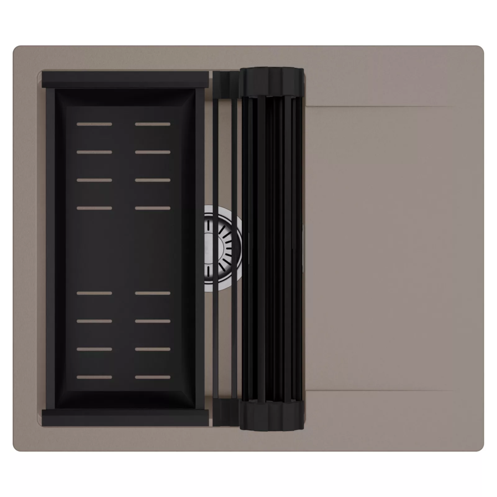 HD Onyx Tortora 58 egymedencés mosogatótálca szett, csepegtetőráccsal és kosárral, tortora