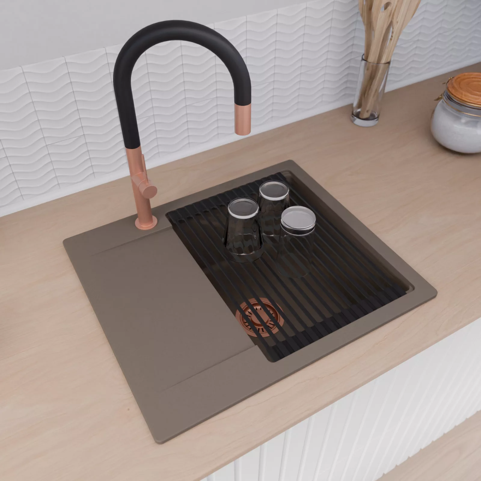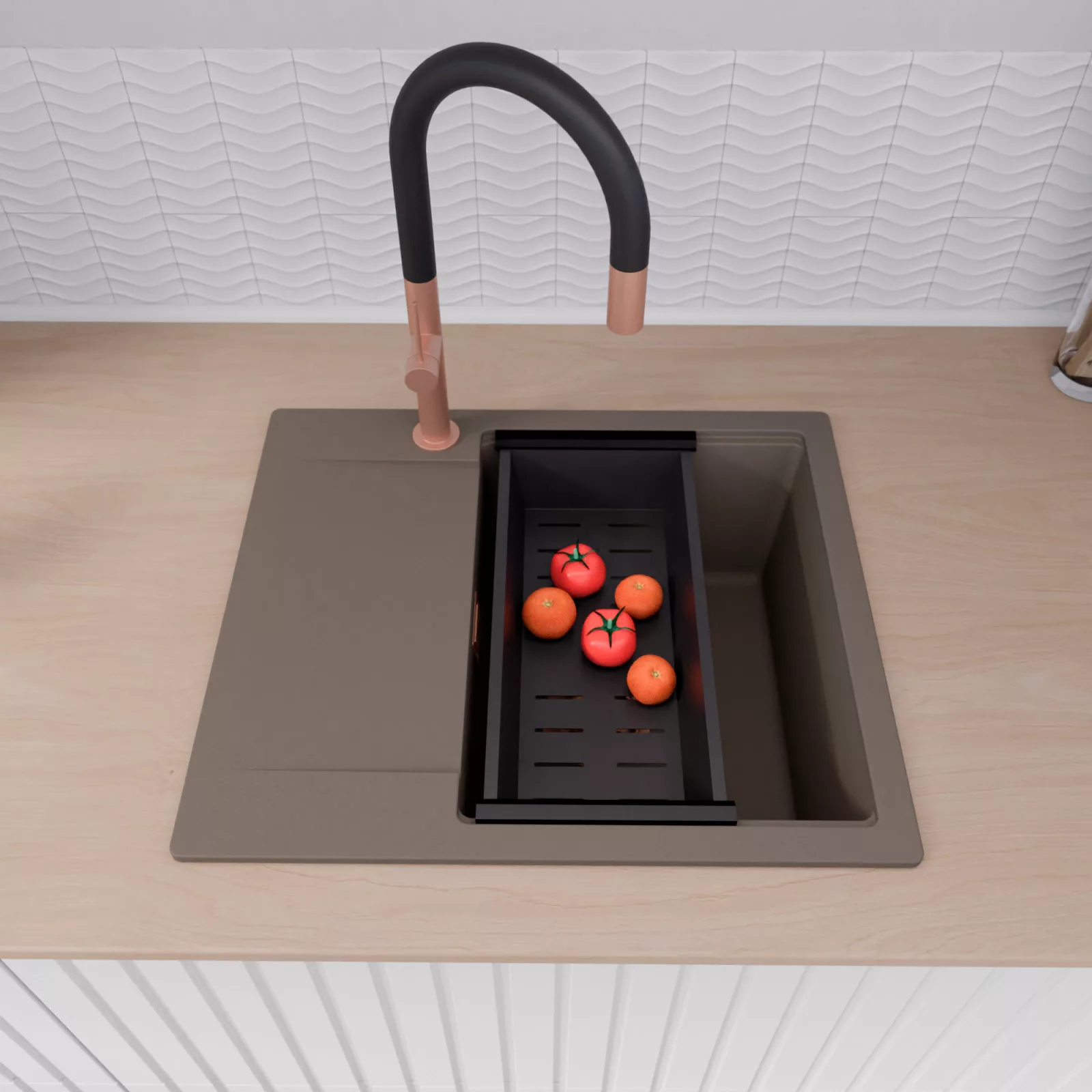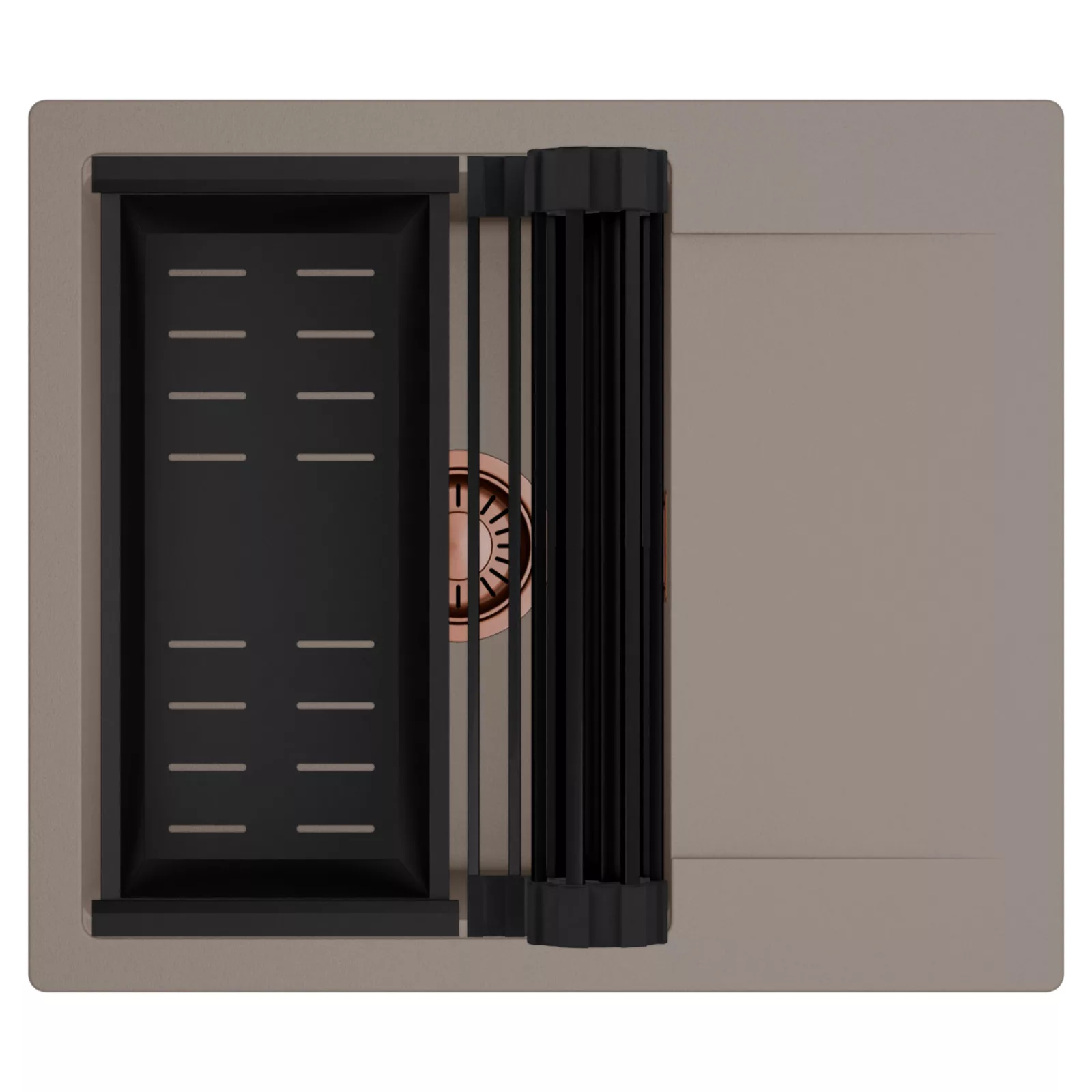 HD Onyx Tortora 58 egymedencés mosogatótálca szett, csepegtetőráccsal és kosárral, tortora