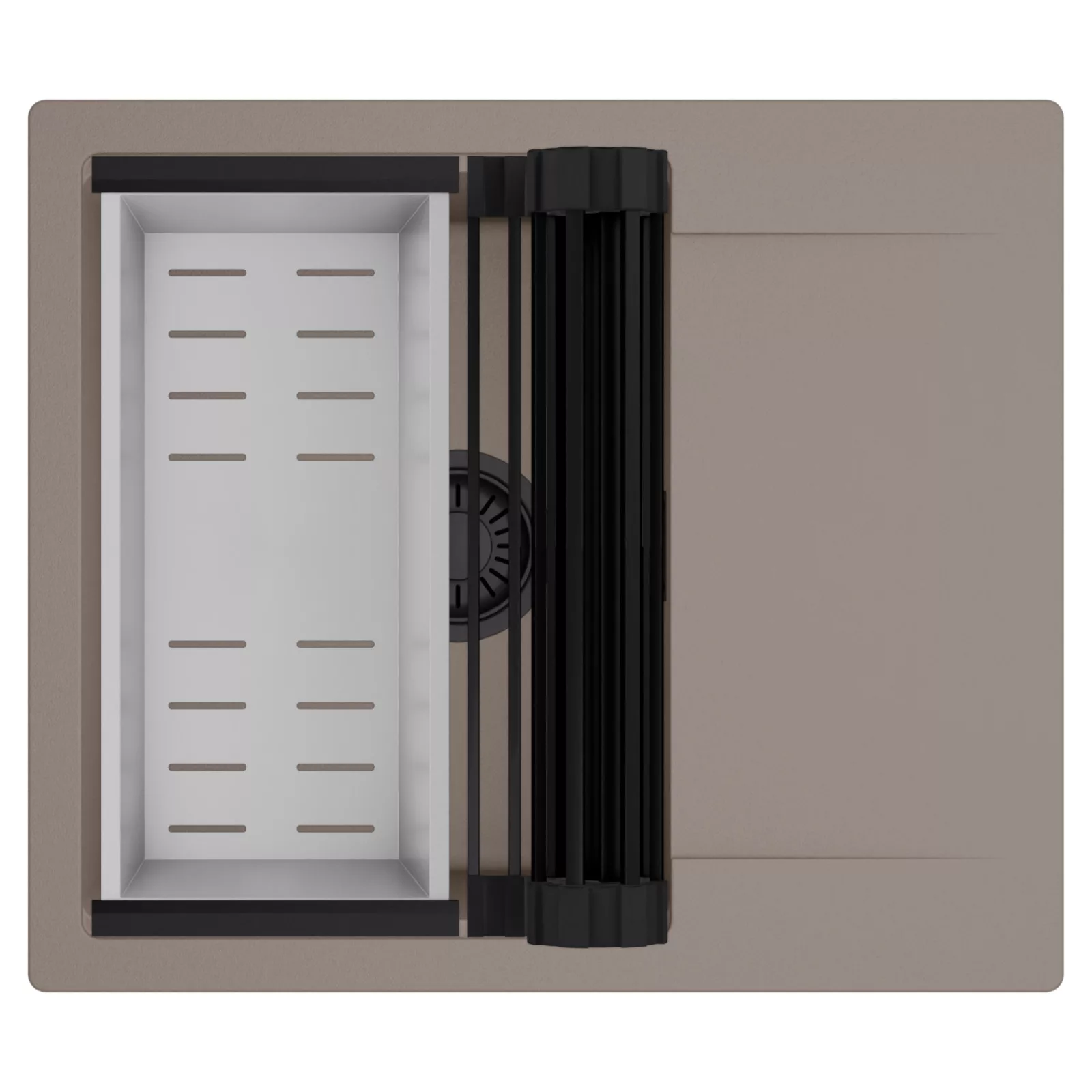 HD Onyx Tortora 58 egymedencés mosogatótálca szett, csepegtetőráccsal és kosárral, tortora