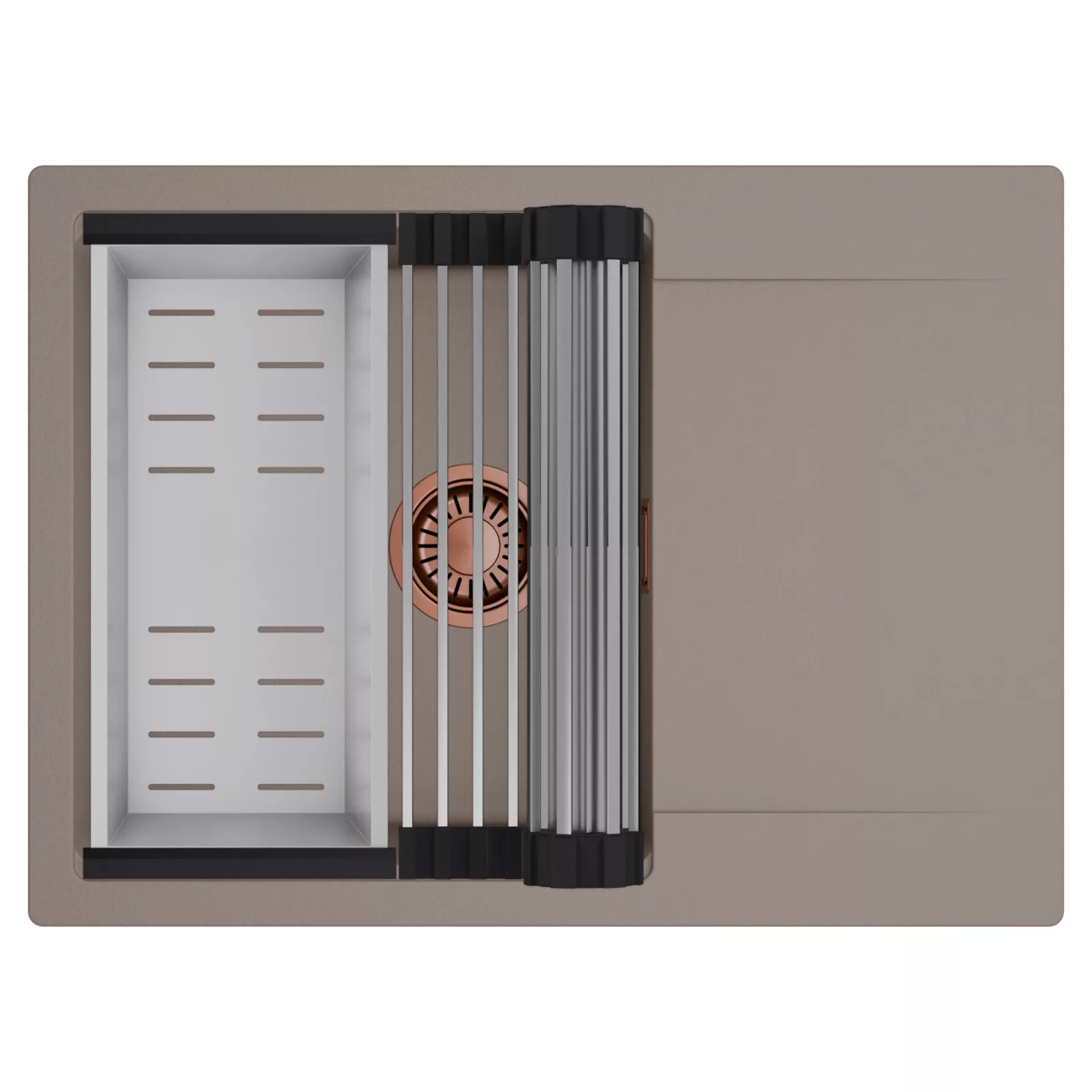 HD Onyx Tortora 68-XL egymedencés mosogatótálca szett, csepegtetőráccsal és kosárral, tortora