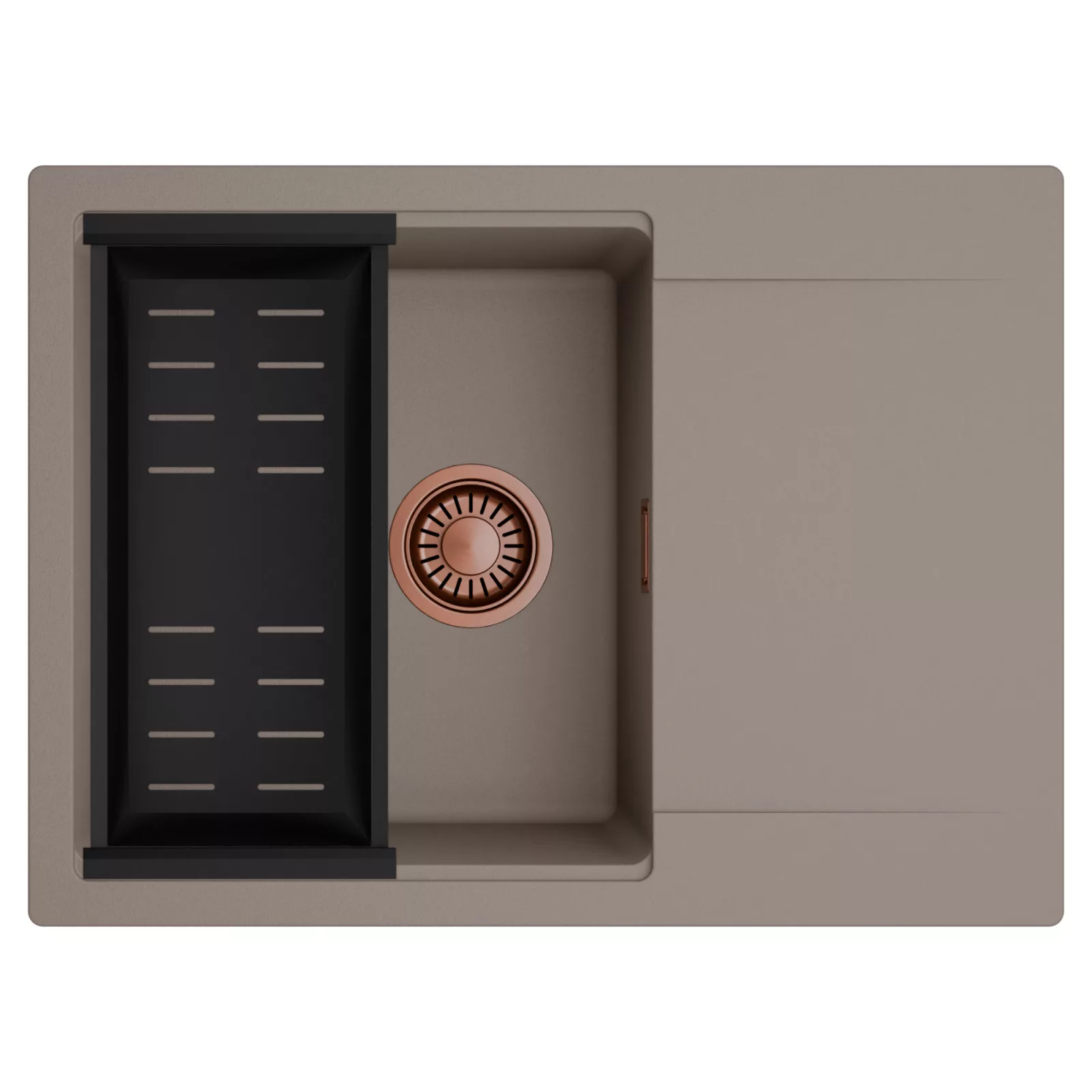 HD Onyx Tortora 68-XL egymedencés mosogatótálca szett, csepegtetőkosárral, tortora